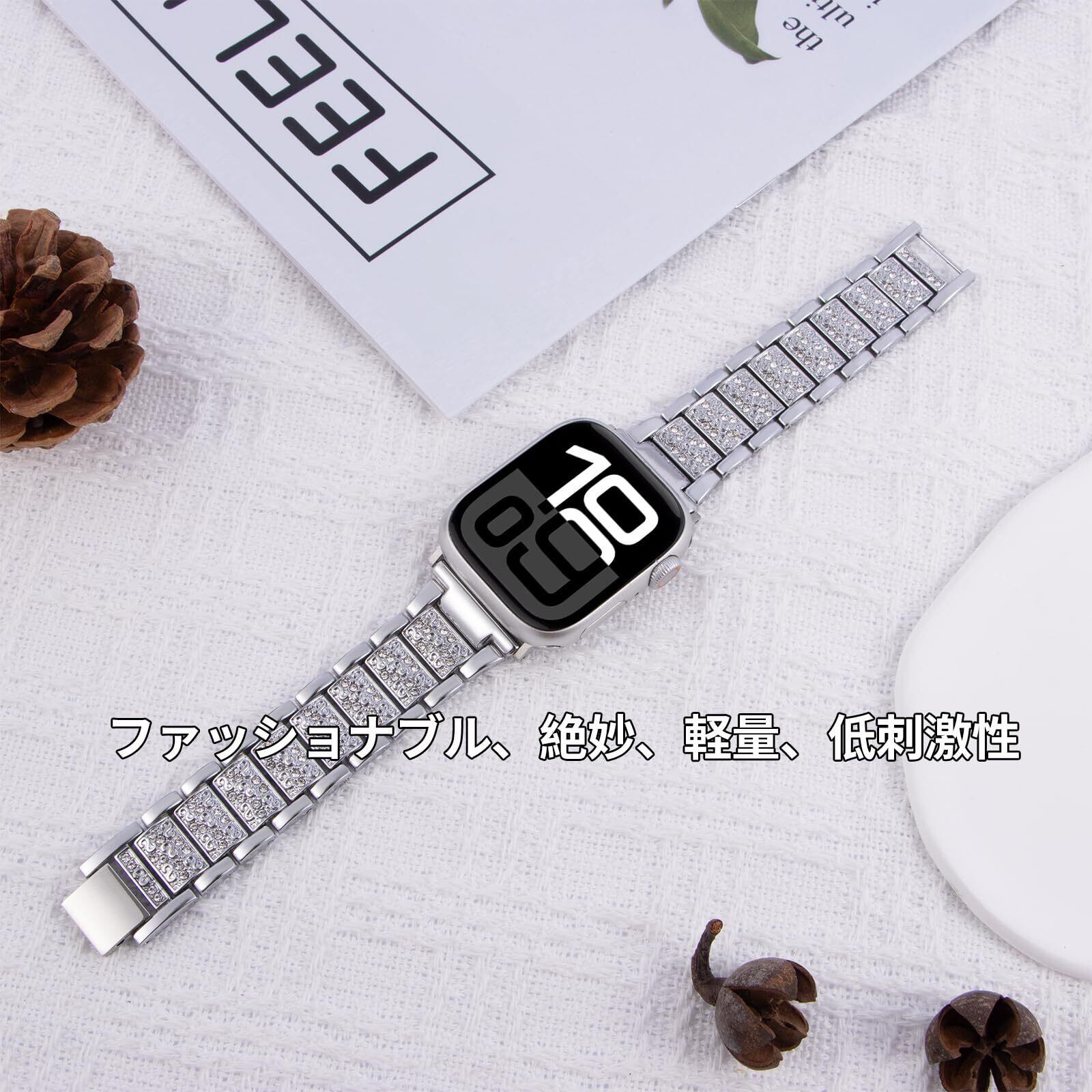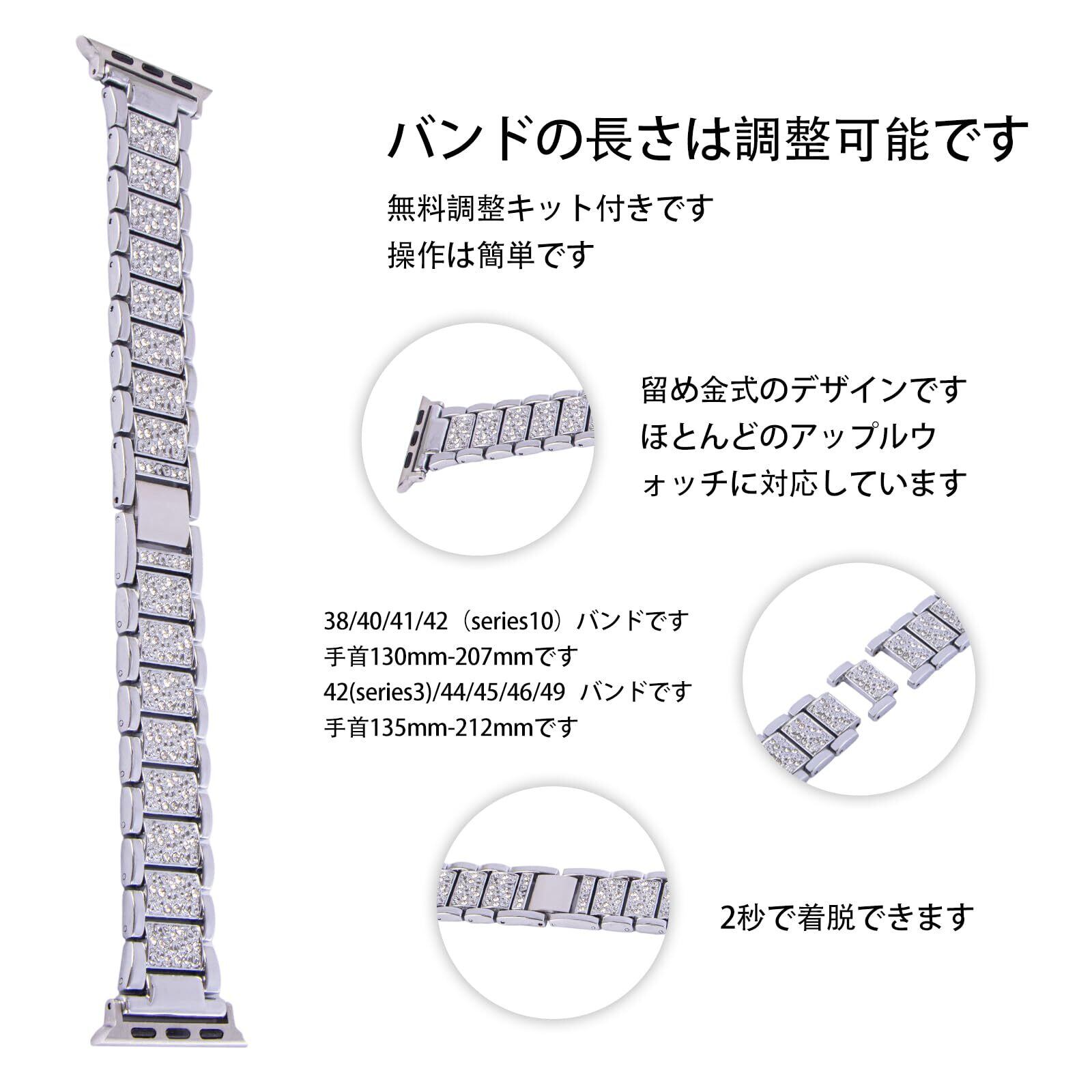 Malcsterid [シルバージルコンデザイン] Apple Watch バンド - Apple Watch 交換用バン - 38mm/40mm/41mm/42mm/45mm/46mm/49mm - 軽量、繊細、輝きます、男女兼用、フリーアジャスター、ギフトボックス - 対応機種 Serie1/2/3/4 /5/6/7/8/9/10/SE/SE2/Ultra/Ultra2