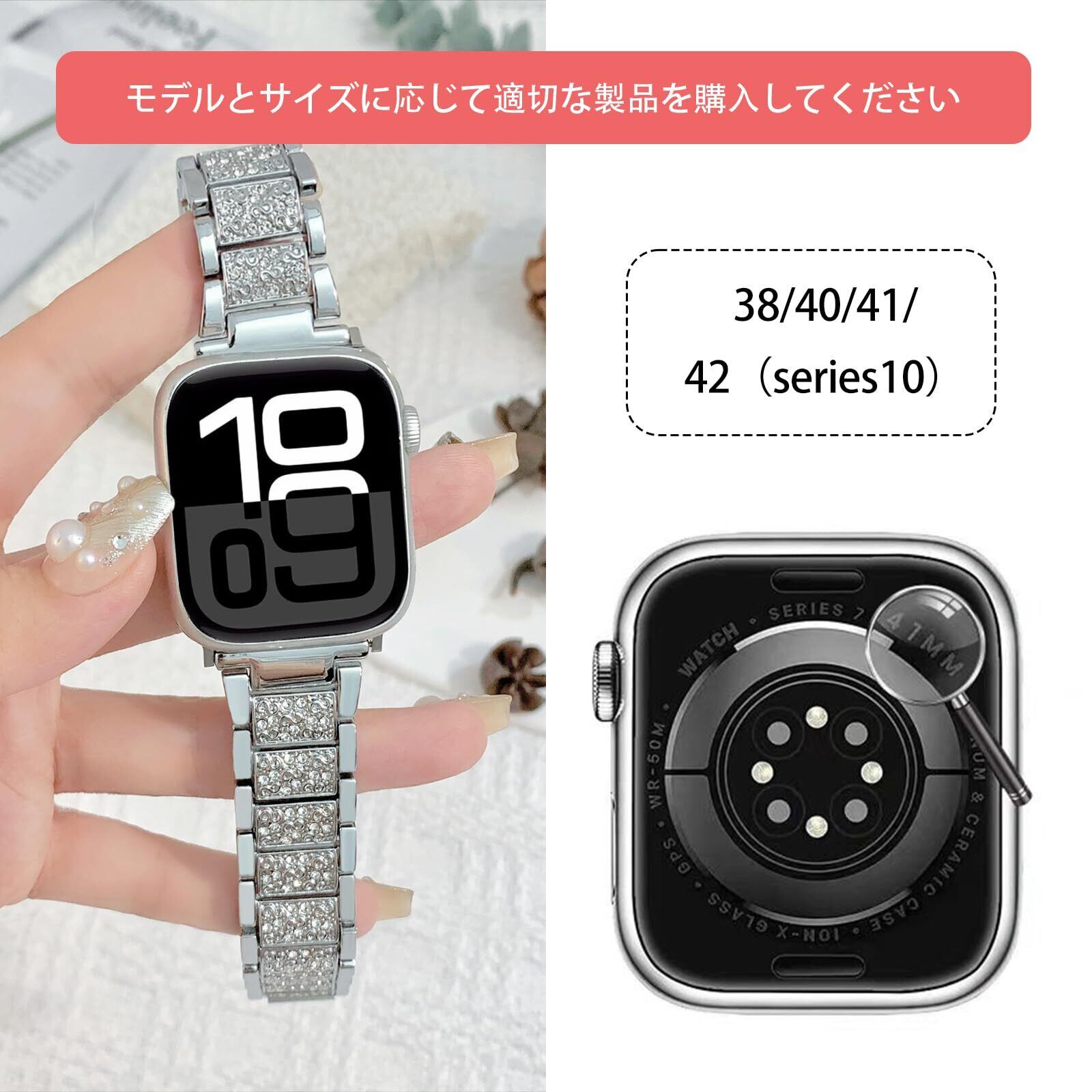【在庫セール】Malcsterid [シルバージルコンデザイン] コンパチブル Apple Watch バンド、交換用バンド - 38mm/40mm/41mm/42mm/45mm/46mm/49mm - 軽量、繊細、光沢、無料調整 容器、ギフトボックス - 対応機種 Serie1 / 2/ 3 /4 /5/6/7/8/9/10/SE/SE2/Ultra/Ultra 2 | gsmshop