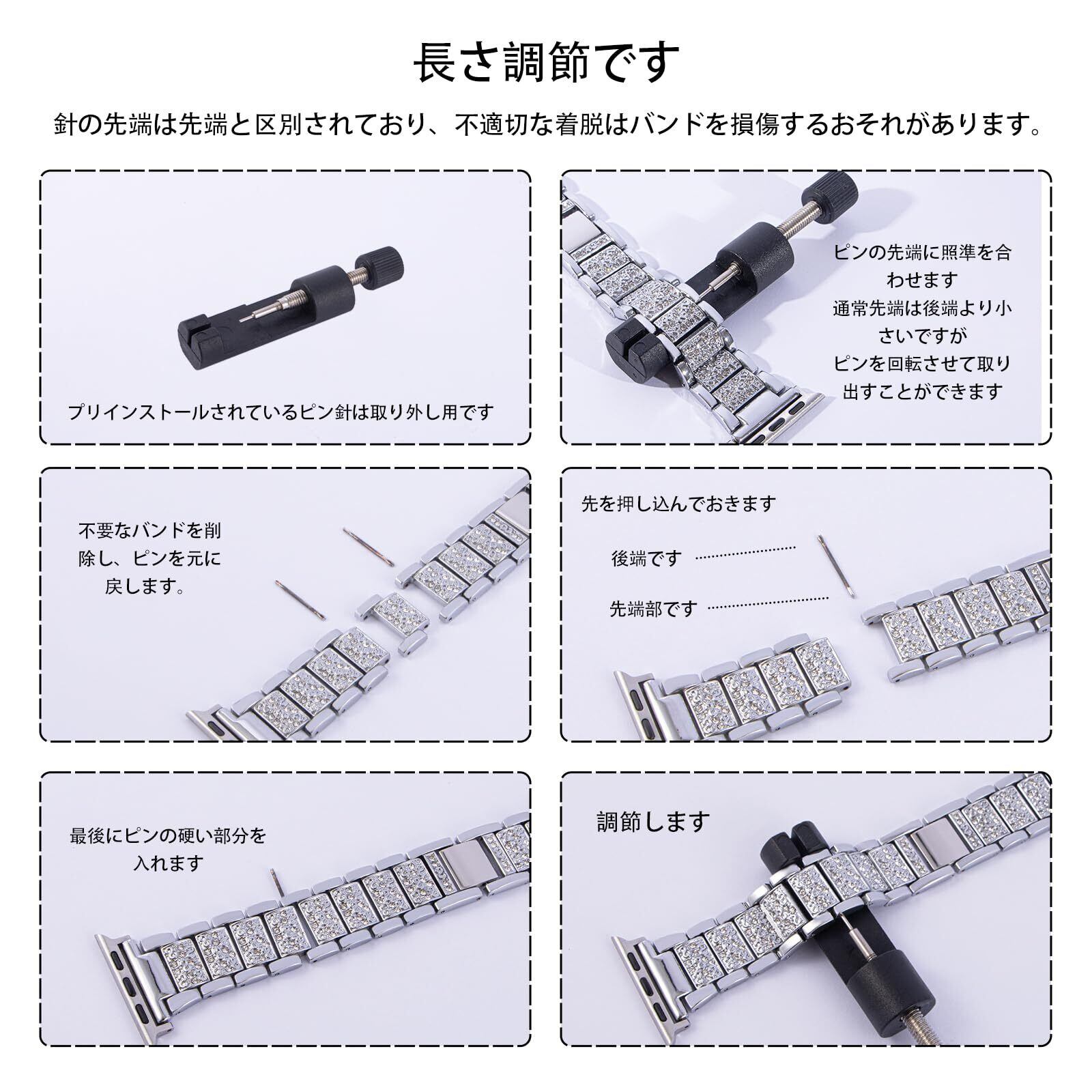 2.高品質のステンレス鋼素材:Malcsterid時計ストラップは高品質のステンレス鋼でできており、抗アレルギー性と防錆性があり、快適で安全な着用をします。ストラップにセットされたジルコンが魅力的な輝きを放ちます。各ジルコンは慎重に選択されており、長期間着用しても輝きを維持し、高級感を与えます。