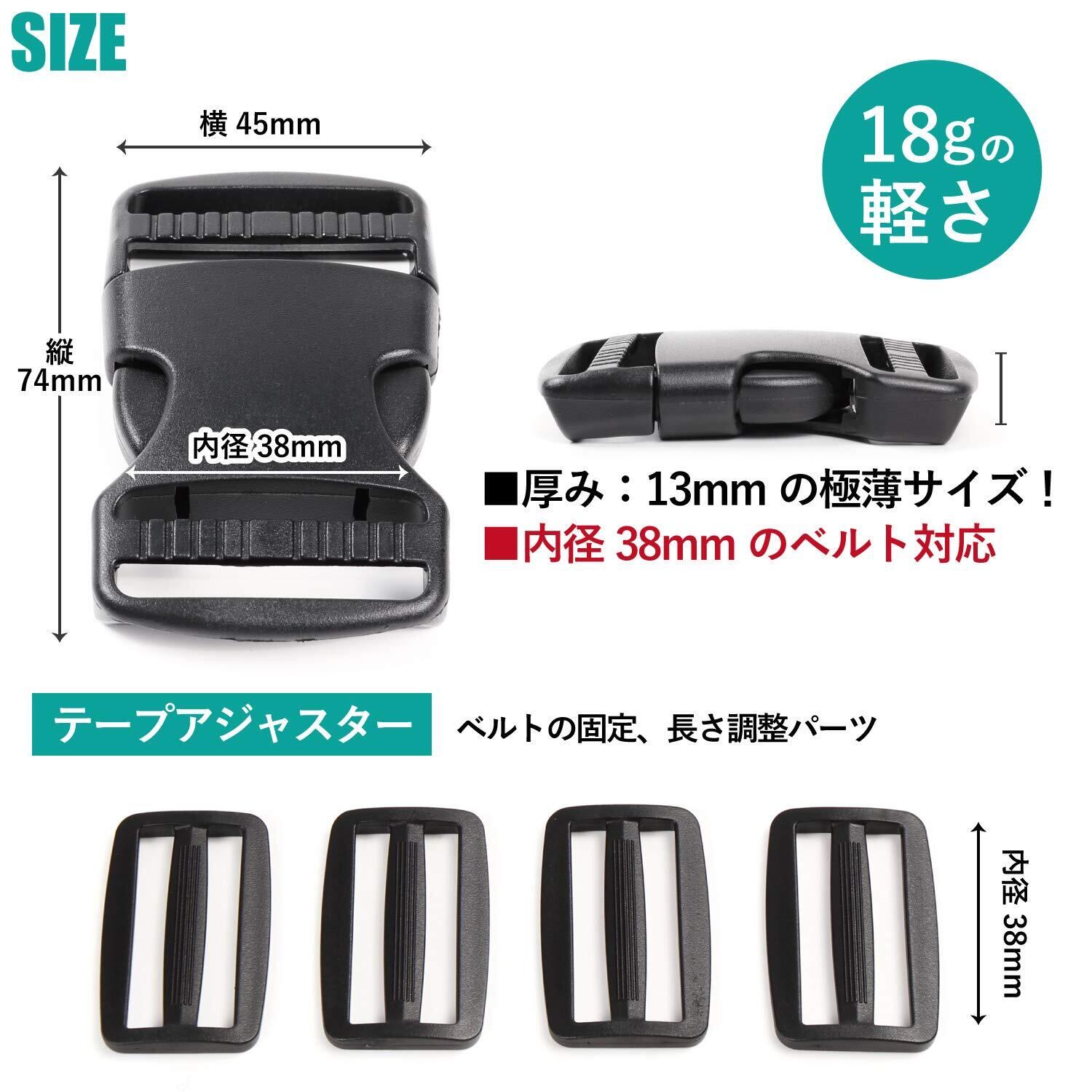 【タイプ】 両側で長さ調整機能を備えたタイプ(両引き) 【 バックル 2個入・テープアジャスター 4個入 】