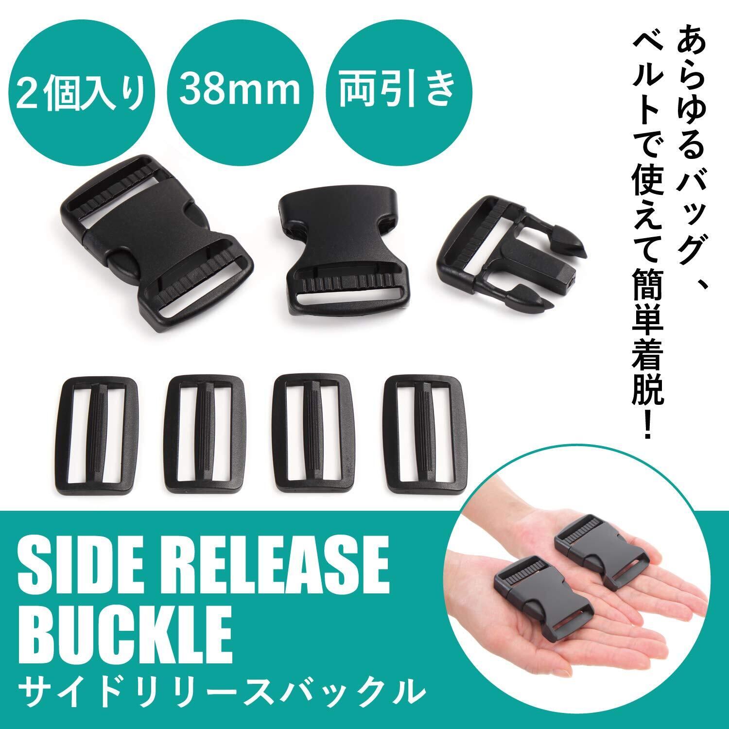 [VivaSmile] 2個入 サイドリリース プラスチックバックル (38mm 両引)