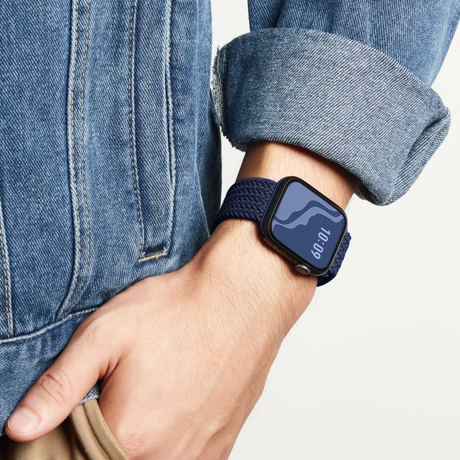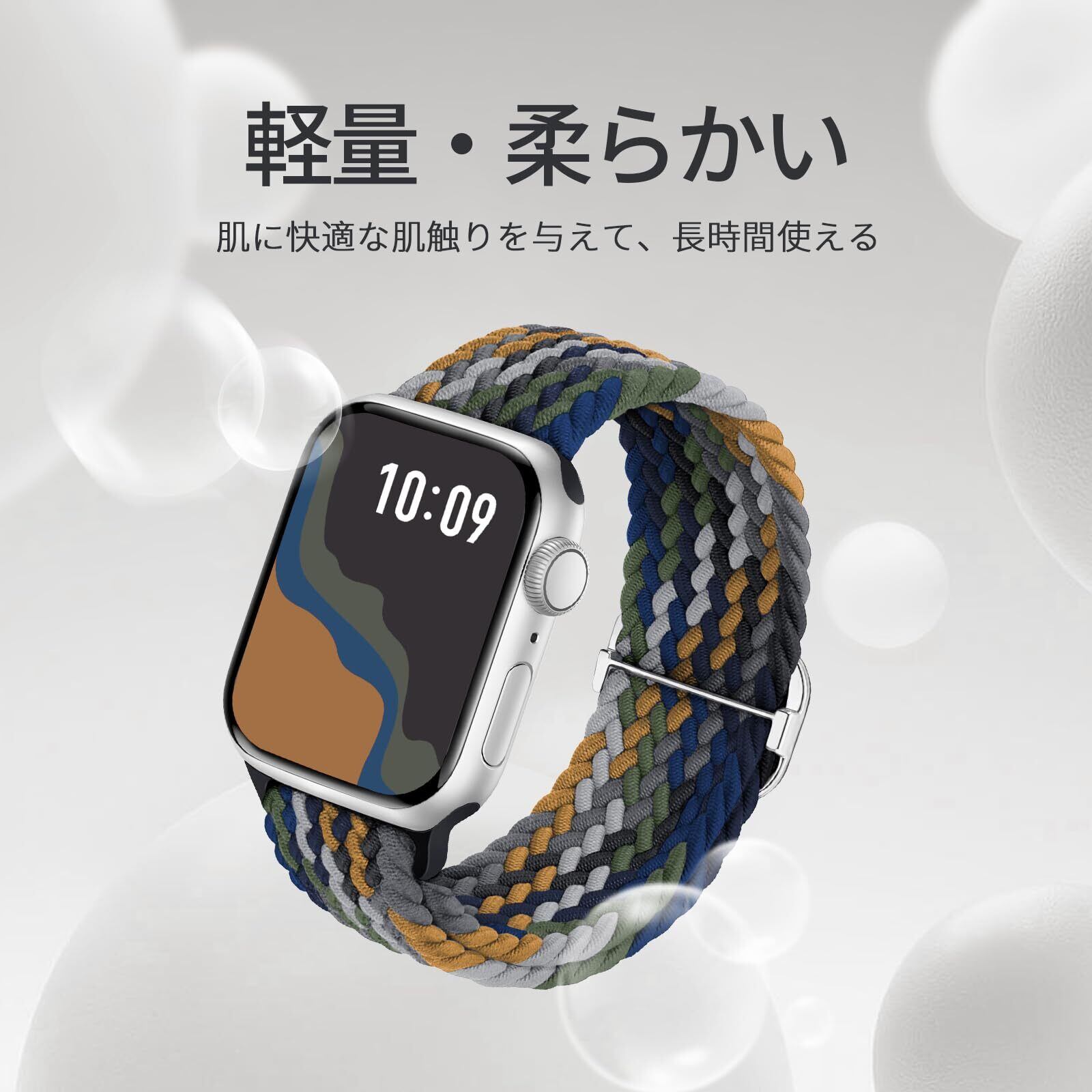 【ユニークな編み込みデザイン】アップルウォッチ 編み込みバンド。伸縮性のある高品質なナイロン糸素材で、高精度な編み込む技術でバンドを織って、特殊な加工で糸が抜けにくいし、何度の着脱も変形にくいです。