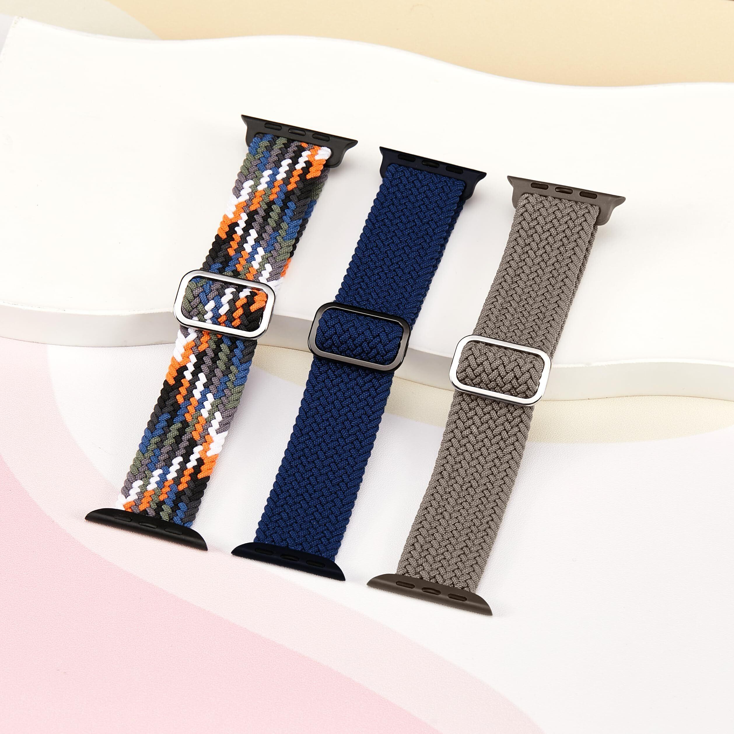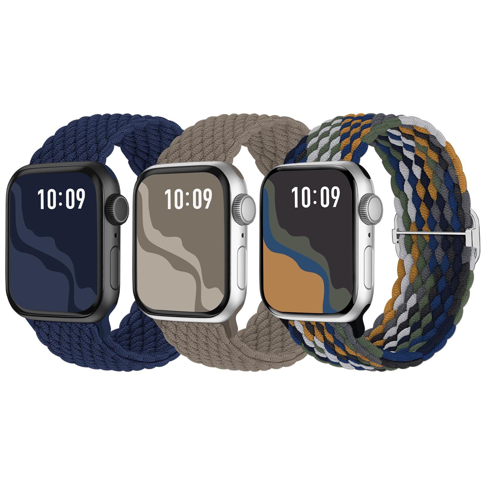 【新着商品】【3枚入り】Suitisbest コンパチブル アップルウォッチ バンド 42mm 41mm 40mm 38mm 編み込み Apple Watch ナイロンバンド 伸縮性 アップルウォッチ スポーツバンド Series 10 9 8 7 6 5 4 3 2 1 SEに対応 長さ無段階調整 柔軟 通気 防汗 カーキブラウン シーブルー 黒藍オレンジ | gsmshop