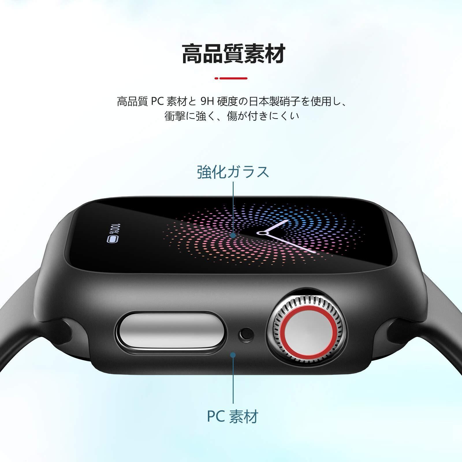 NIMASO ケース Apple Watch Series 6 / SE / Series 5 / Series4 対応 40mm 用 PC素材 強化ガラス 保護カバー アップルウォッチケース(ブラック)