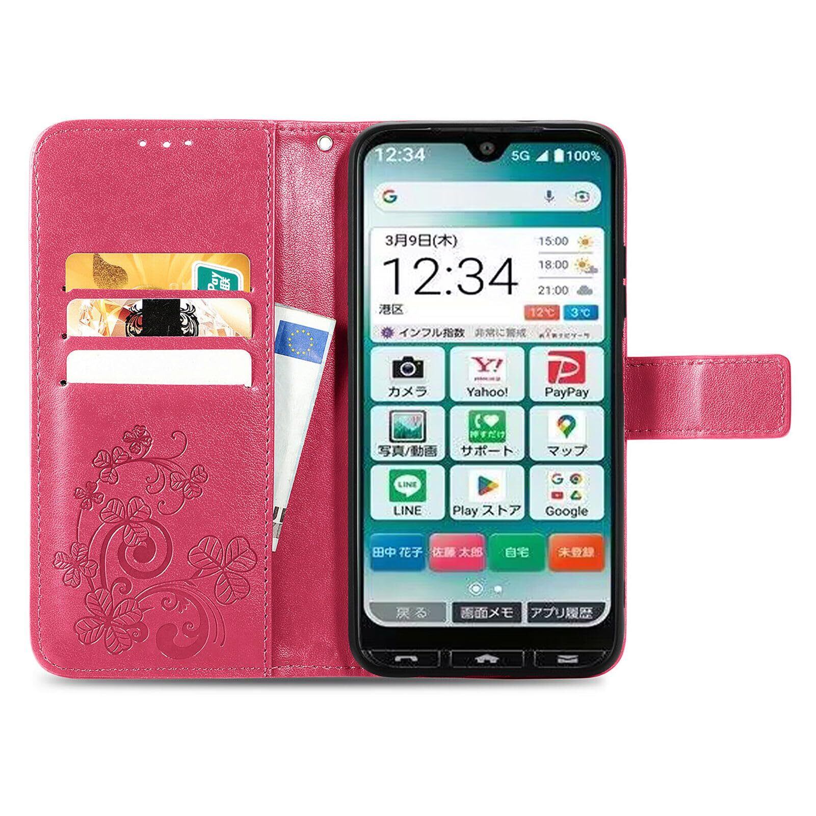 【2022最新】に適用するLibero 5G IV ケース 手帳型 ノートブック型携帯電話保護カバー多機能携帯電話ホルスター財布携帯電話ホルダーバンプパターンテクスチャ耐久性摩擦耐性携帯電話ケース男性と女性に適した多色オプション (z四つ葉のクローバー赤) | gsmshop