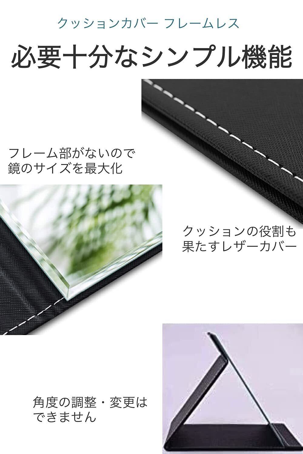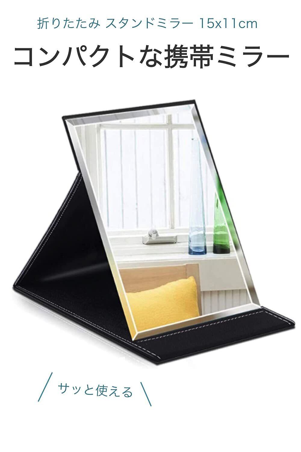 wumio スタンドミラー 鏡サイズ 15 x 11cm 黒 折りたたみ 卓上ミラー レザー クッション 角型 携帯 持ち運び コンパクト ミラー メイク