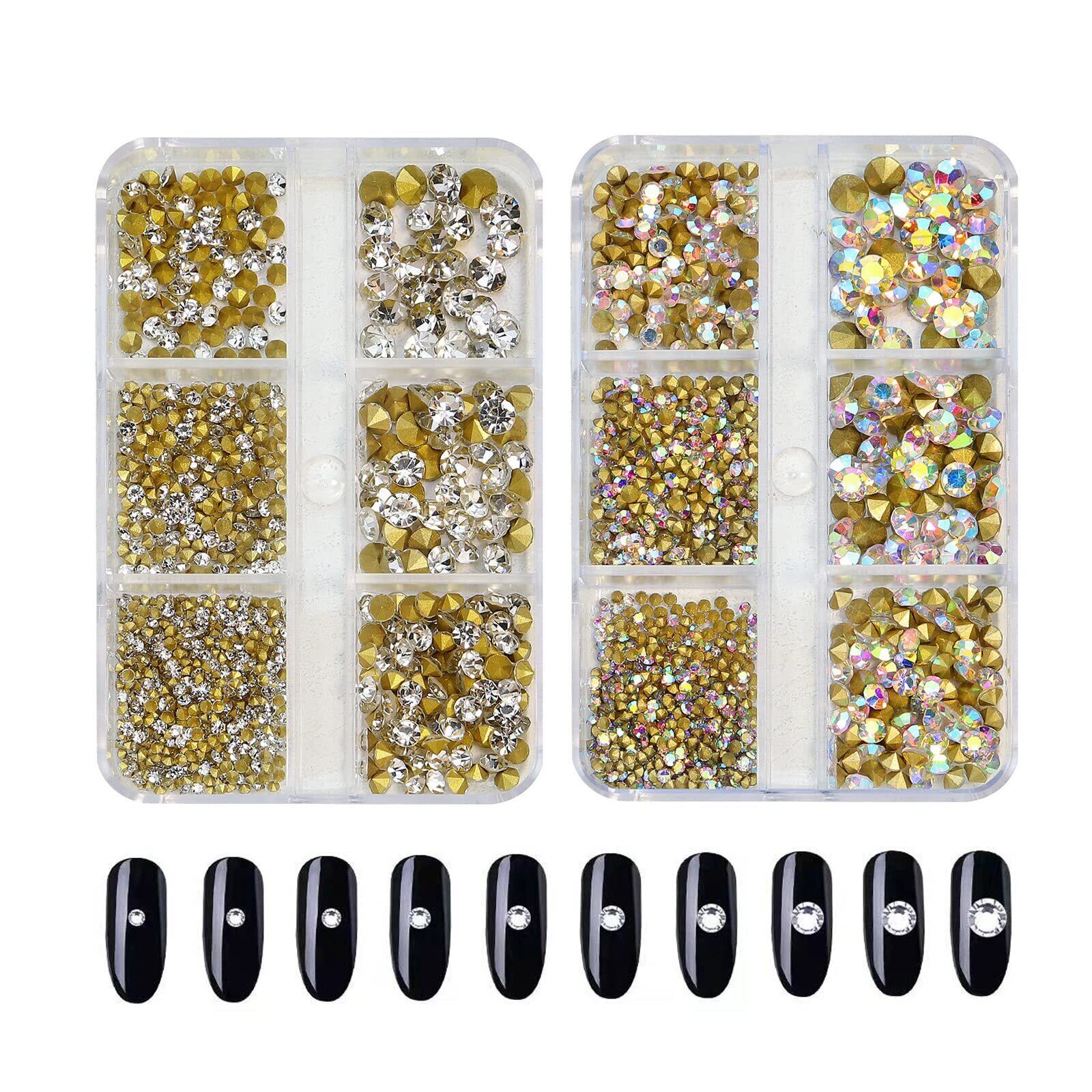 【特価商品】ネイルパーツ ラインストーン クリスタル クリア オーロラ vカットストーン ネイル用ストーン 2mm/3mm/4mm ジェルネイル デコ素材 デコパーツ レジン 手芸 ハンドメイド 2個セット (2ケース C) | gsmshop