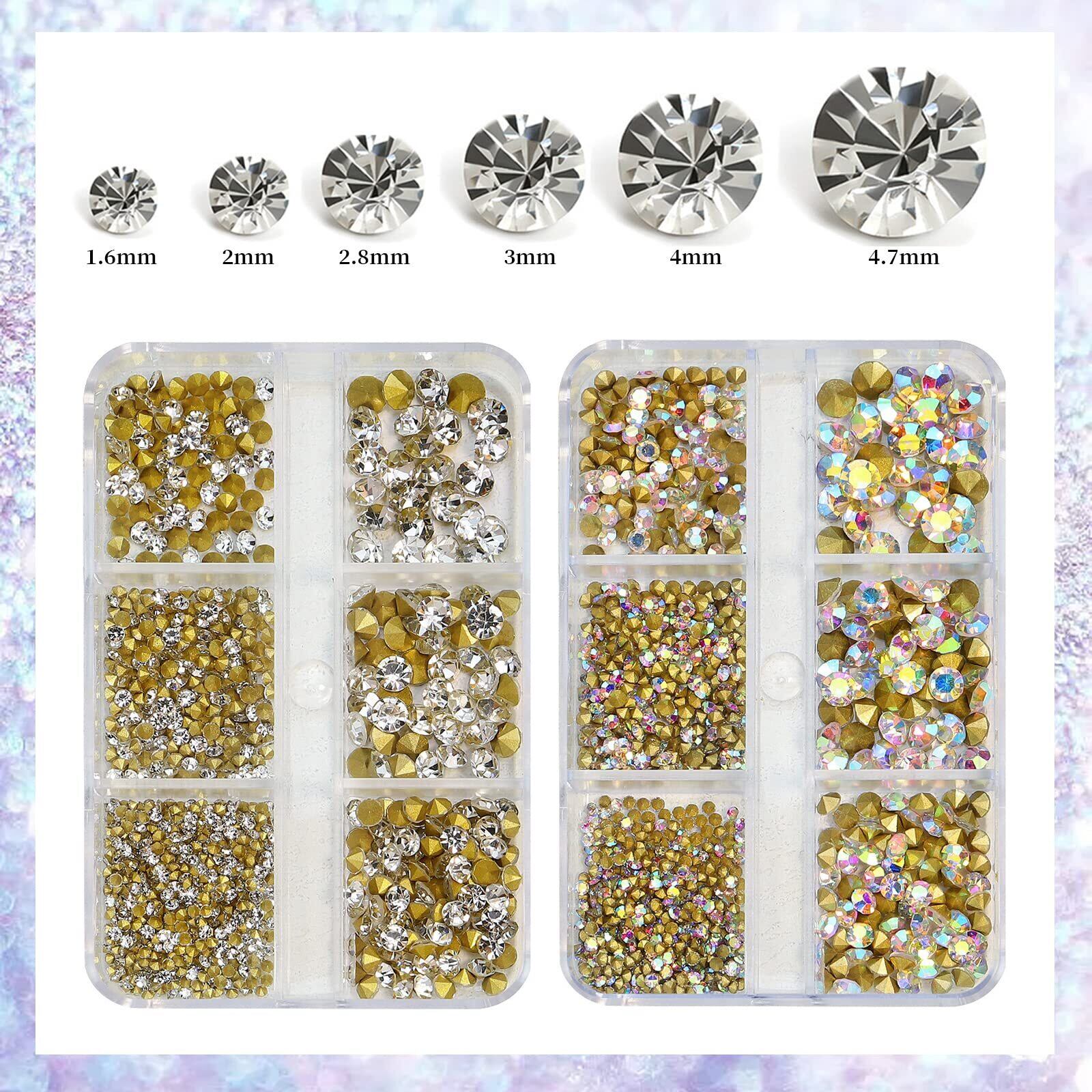 【サイズ】1.6mm 2mm 2.8mm 3mm 4mm 4.7mm 小さいストーンから大きいストーンまで、よく使われたサイズが揃っています。ケースのサイズ:7.5*5*1.2cm