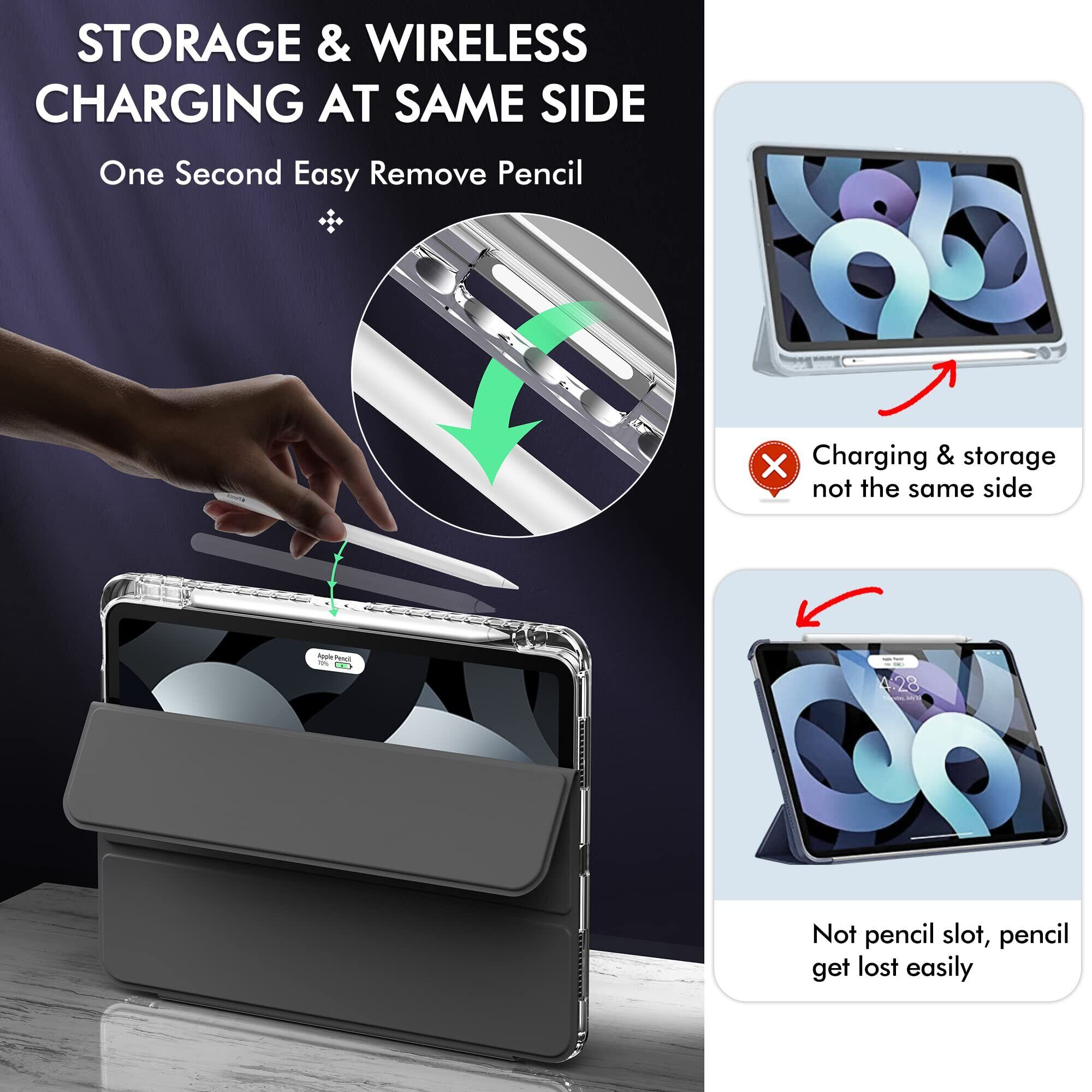 INFILAND iPad Air 11インチ ケース M2 (2024、第6世代), iPad Air 第5世代/第4世代 2022/2020 用 ケース ipad 10.9インチ カバー ペンホルダー付き 軽量 薄型 裏全透明カバー 耐衝撃 三つ折り保護カバー スマート オートスリープ機能(グレー)