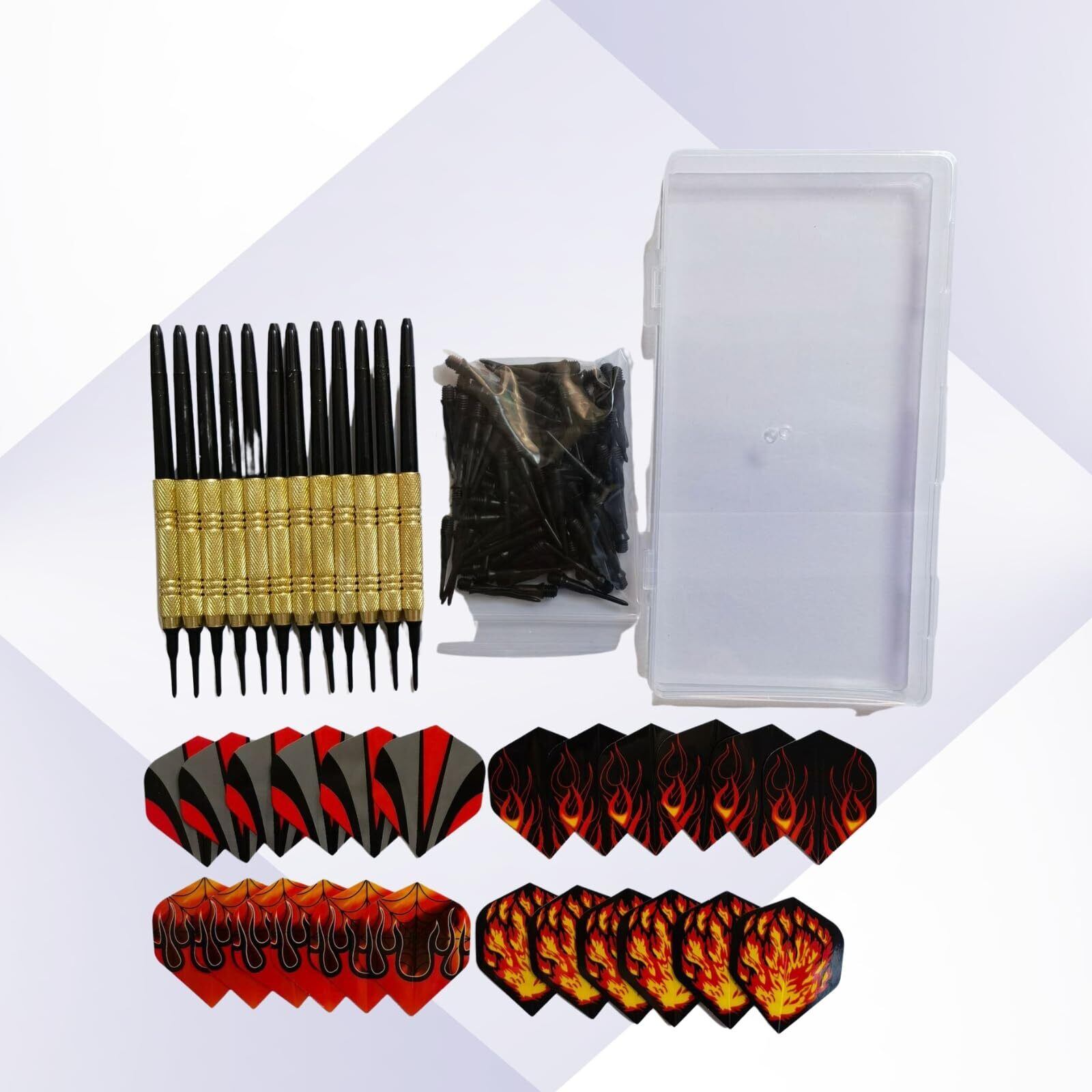 【セット内容】ダーツバレル(12個)、シャフト(12個)、フライト(24個)、ティップ(100個)、保存用ケース(1個)