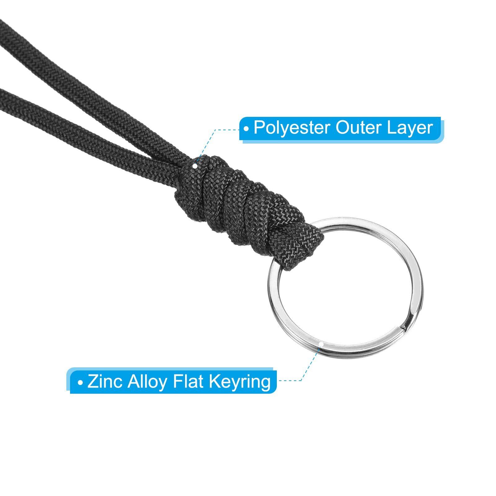 PATIKIL パラシュートコードストラップ パラコードリストコード キーリング付き 460mm キーチェーンコード メタルフックストラップ キーホイッスルIDカードバッジホルダー用 ブラック