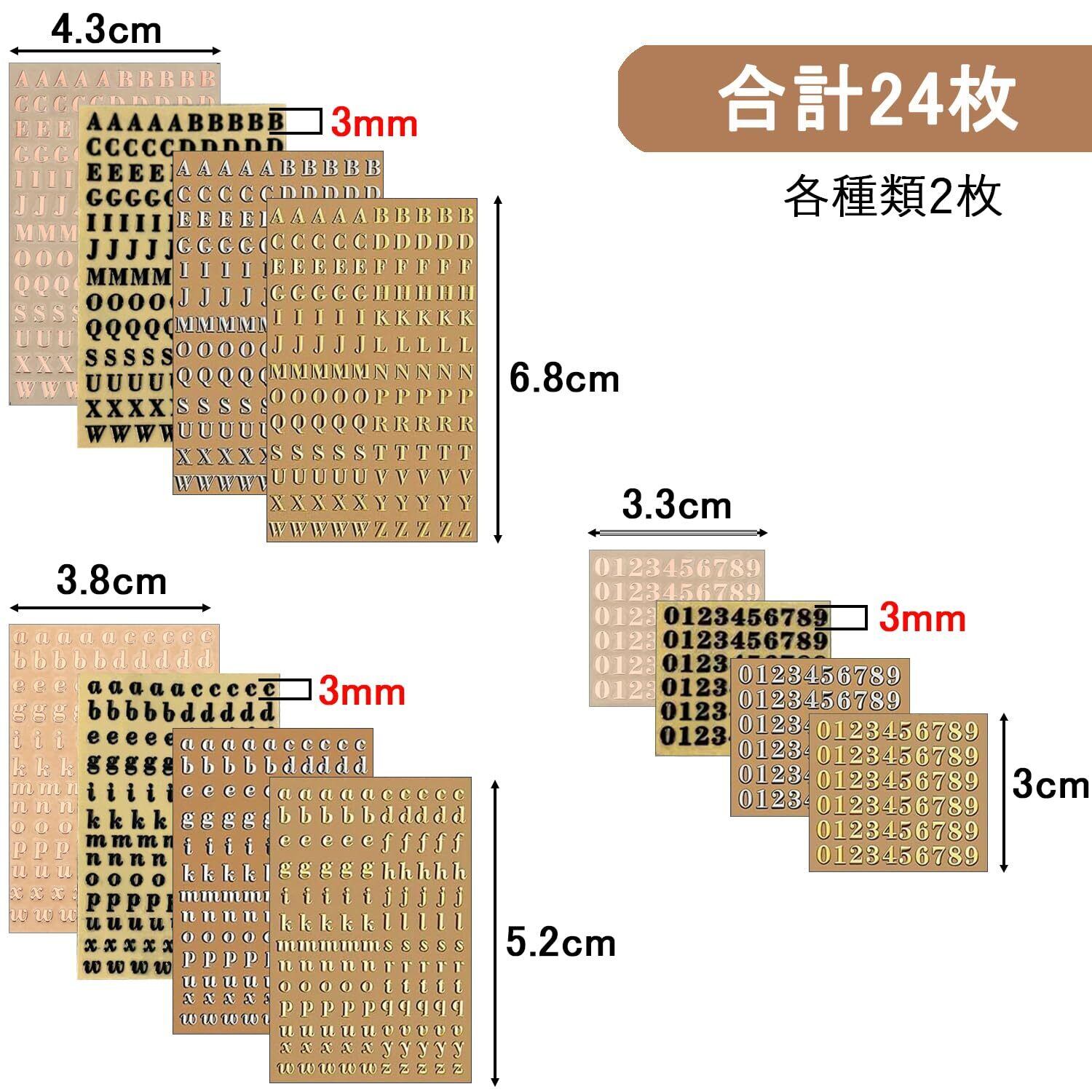 SOYANGNEK 24枚 アルファベット シール 3mm レジン 金属 防水DIYネイルシール 数字 英字 手作り 手帳 貼り紙 電話装飾 スケジュールシール 自粘着