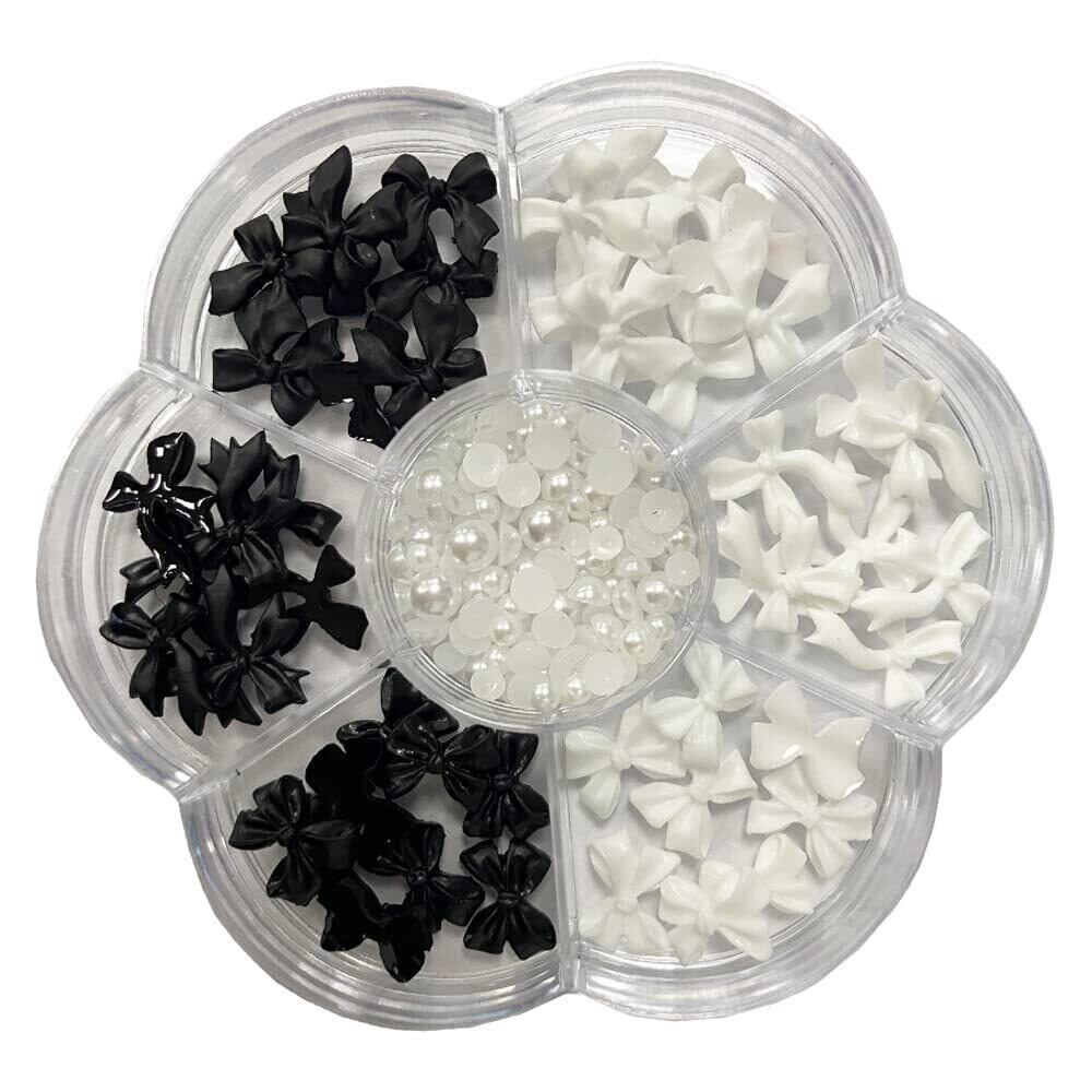 【在庫セール】ネイルパーツ 3D 立体 蝶結び 半円パール 1セット ネイル装飾 DIY ジュエリーパーツ ハンドメイド 手作り デコパーツ ネイルアート レジン デコパーツ ブラック ホワイト | gsmshop