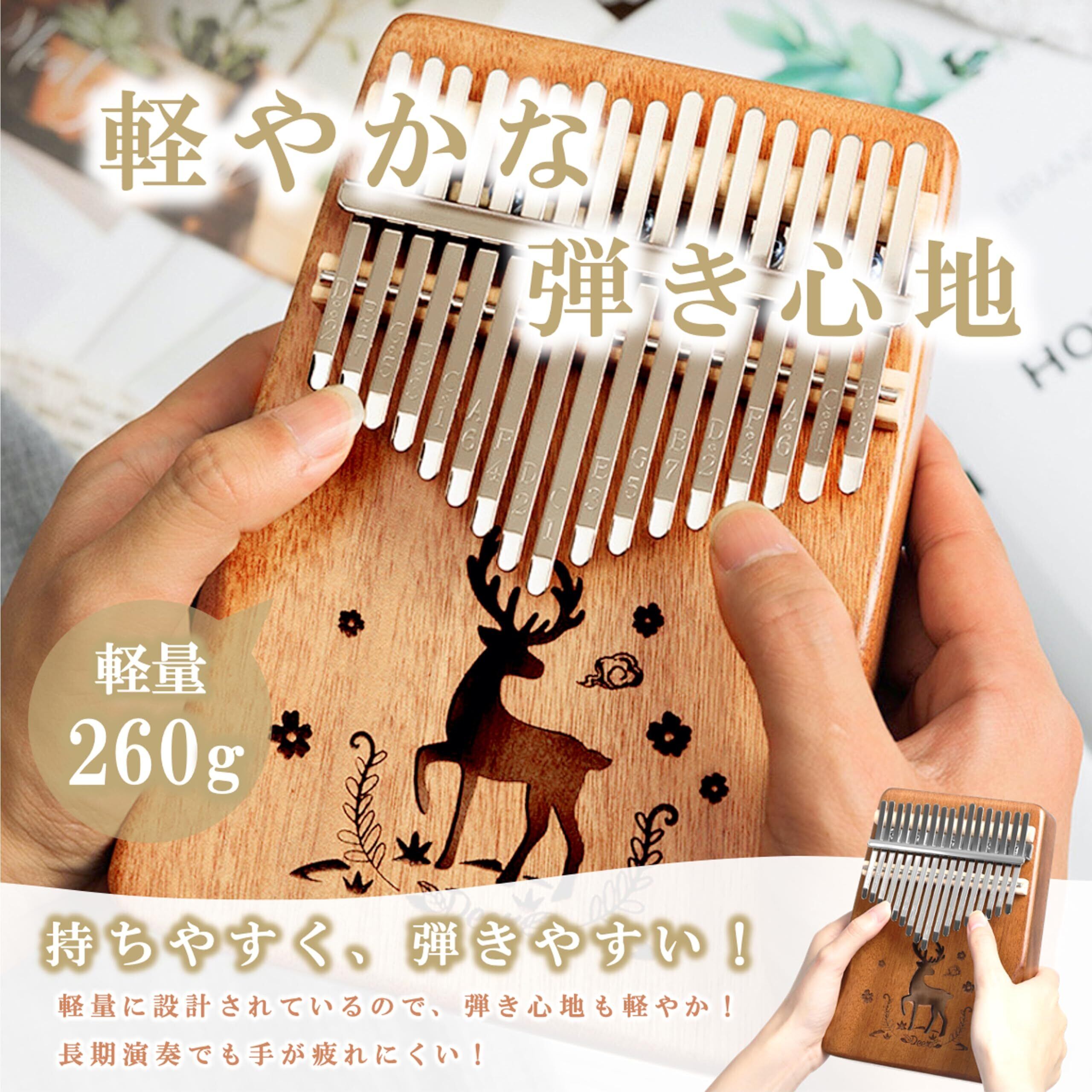 カリンバ 初心者セット 17キー マホガニー チューニング済み 初心者 入門書 日本語 楽譜つき kalimba 刻印あり 楽器 (焦茶)