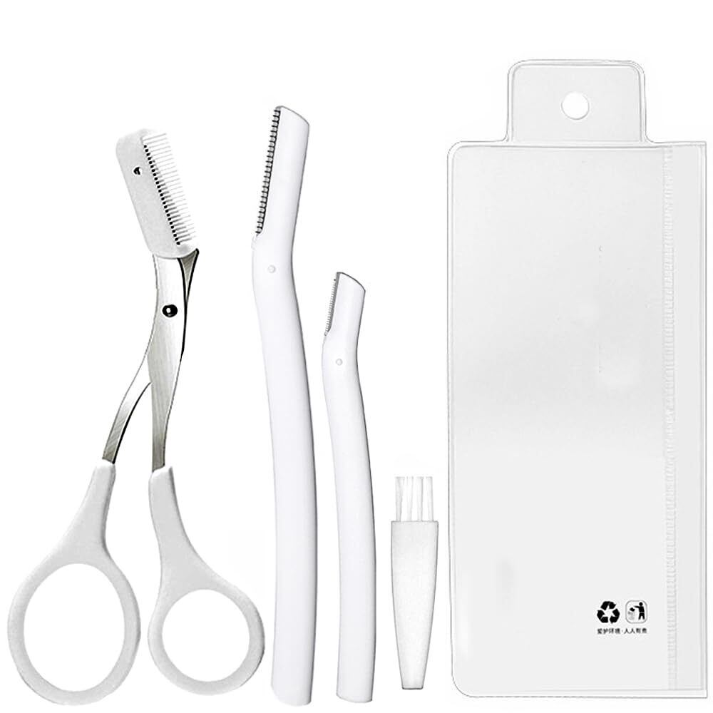 【特価商品】眉毛セット 眉毛カット 眉毛はさみ 5点セット クシ付きハサミ 眉毛剃り 眉毛コーム 眉メイクアップ道具 初心者用 美容 美顔 コーム付き クリーニングブラシ 収納袋付 旅行 出張 持ち運び便利 男女兼用 化粧小物(ホワイト) | gsmshop
