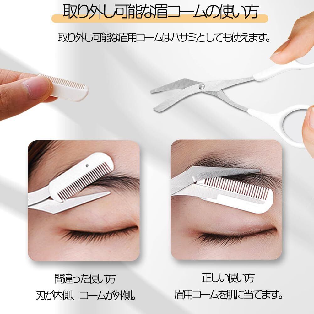 眉毛セット 眉毛カット 眉毛はさみ 5点セット クシ付きハサミ 眉毛剃り 眉毛コーム 眉メイクアップ道具 初心者用 美容 美顔 コーム付き クリーニングブラシ 収納袋付 旅行 出張 持ち運び便利 男女兼用 化粧小物(ホワイト)