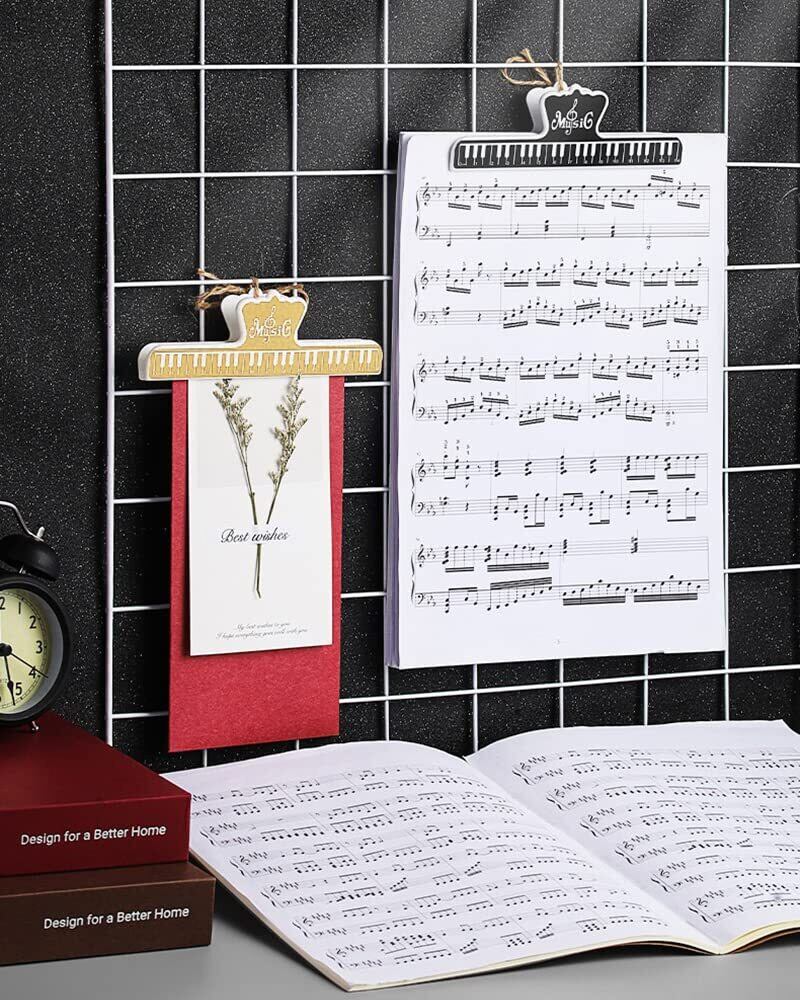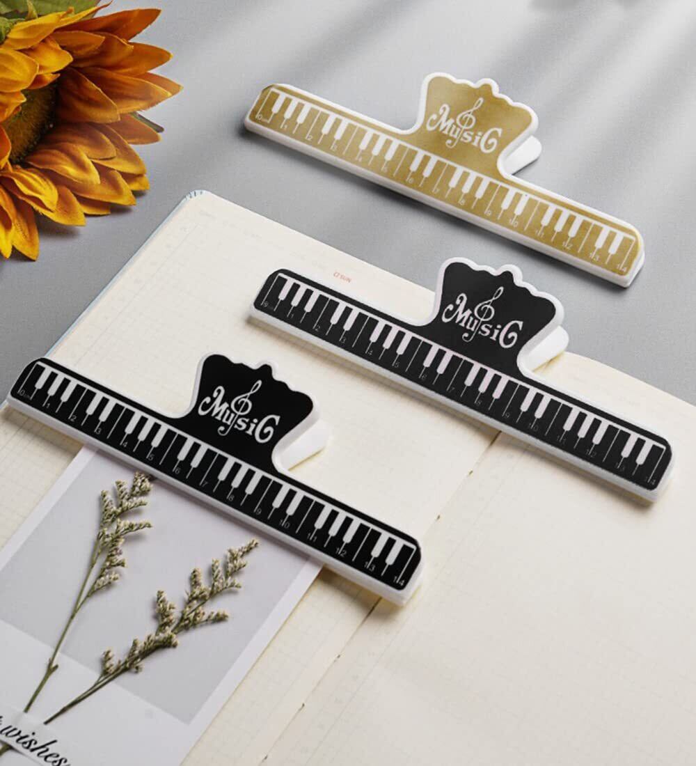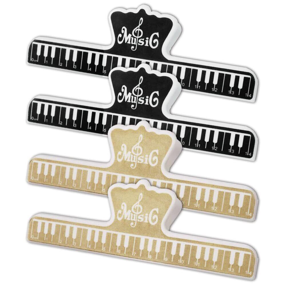 【在庫処分】楽譜クリップ 4個セット ピアノ ギター ブック 本 楽譜 ページ メモ クリップ ミュージック 音符 音楽 グッズ アクセサリー プラスチック製 (ブラック+ゴールド) | gsmshop
