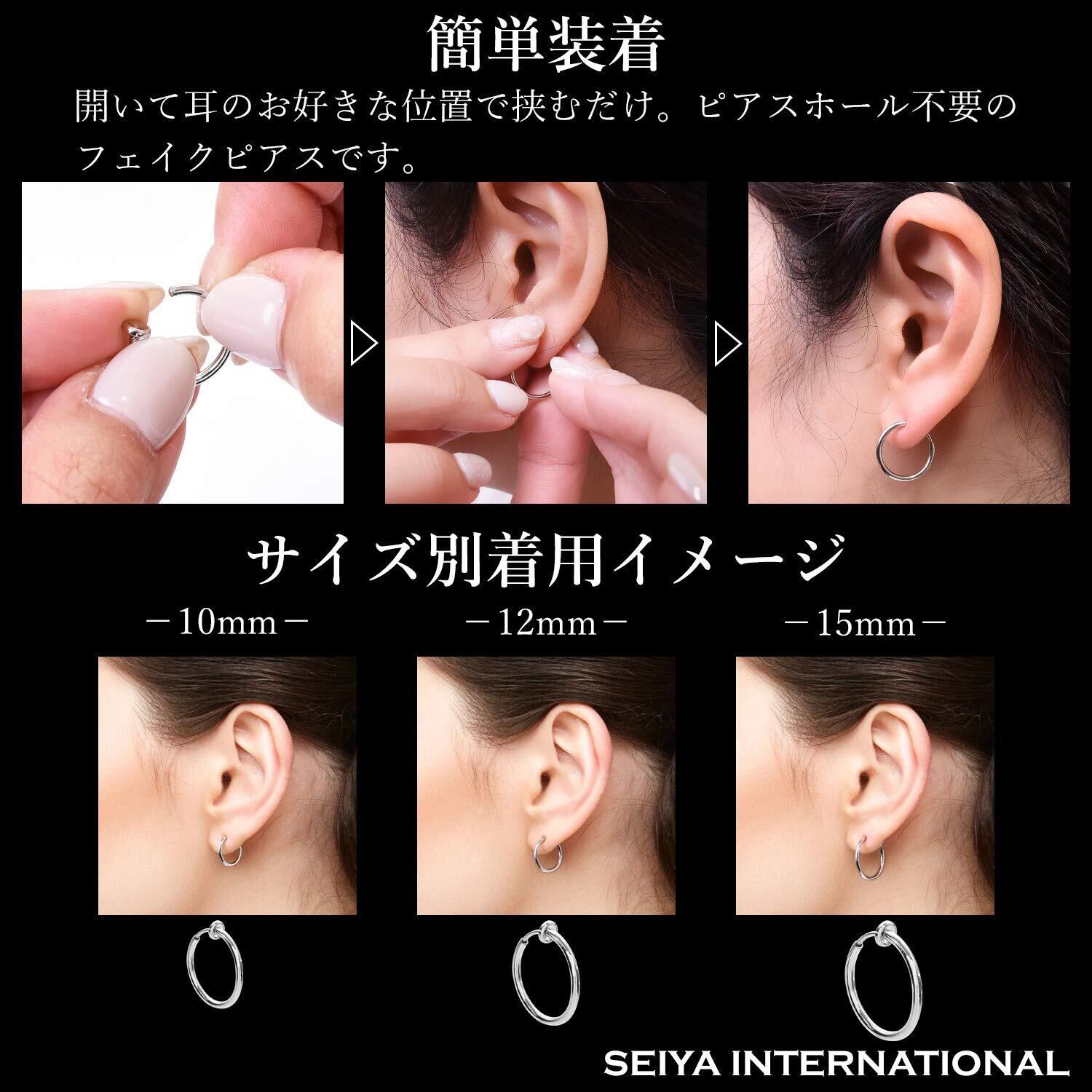 [セイヤインターナショナル] フェイクピアス メンズ レディース イヤリング ノンホールピアス イヤーカフ 穴なし リング フープ 両耳 3ペア 6個セット (シルバー)