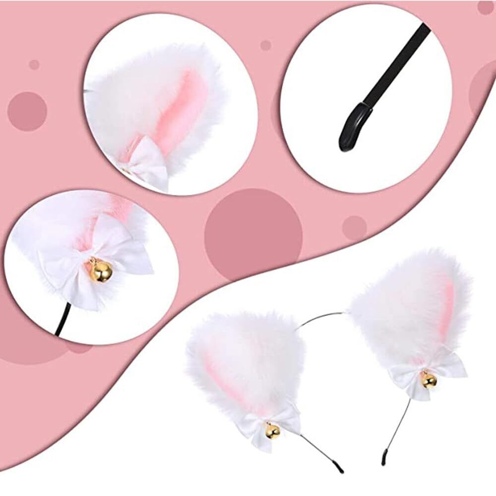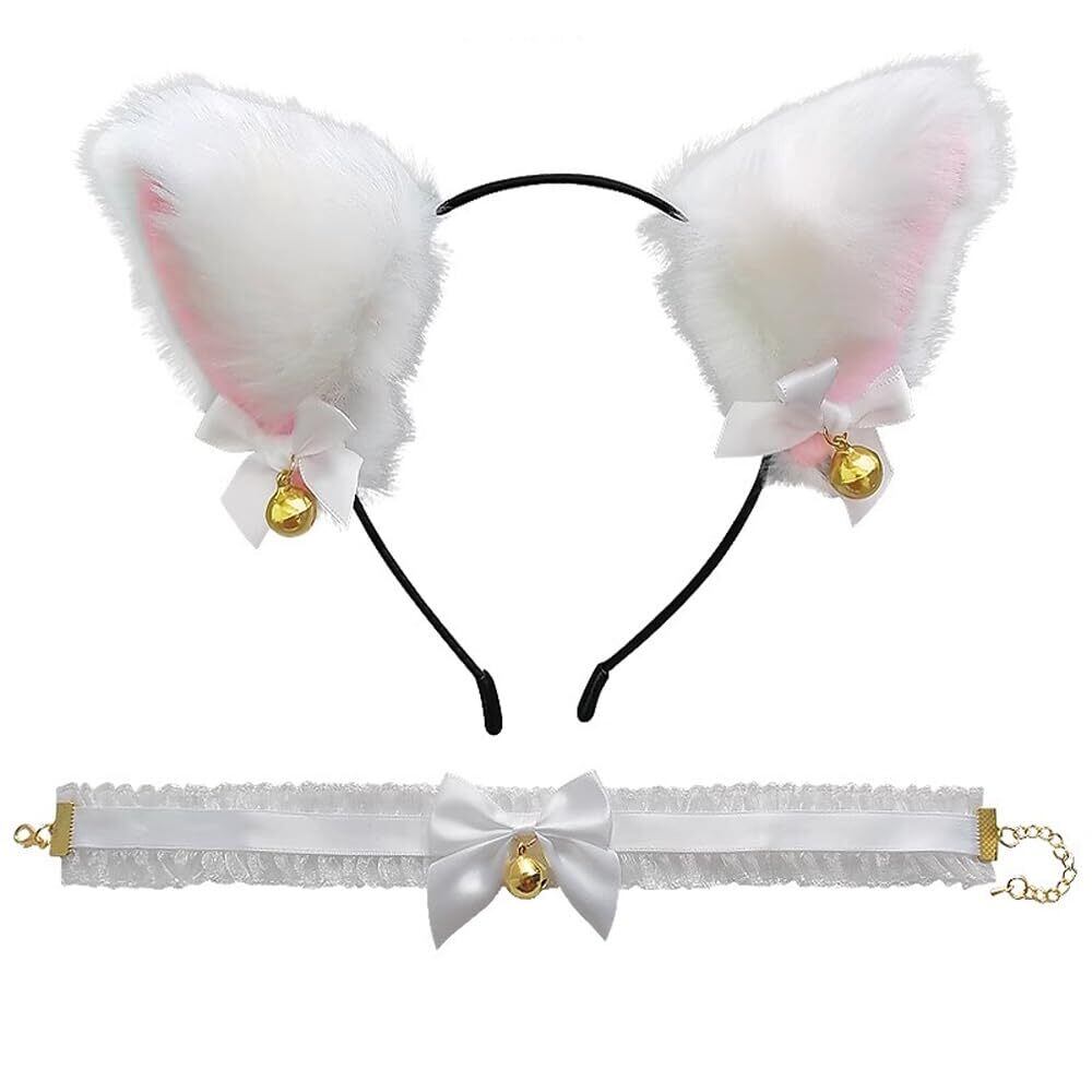 ZUNNY HJERBOF 猫耳 白猫2点セット もふもふ耳 ネックレス ハロウィン 文化祭 可愛い イベント衣装 仮装 コスチューム ダンス衣装 野球観戦 応援グッズ (白)