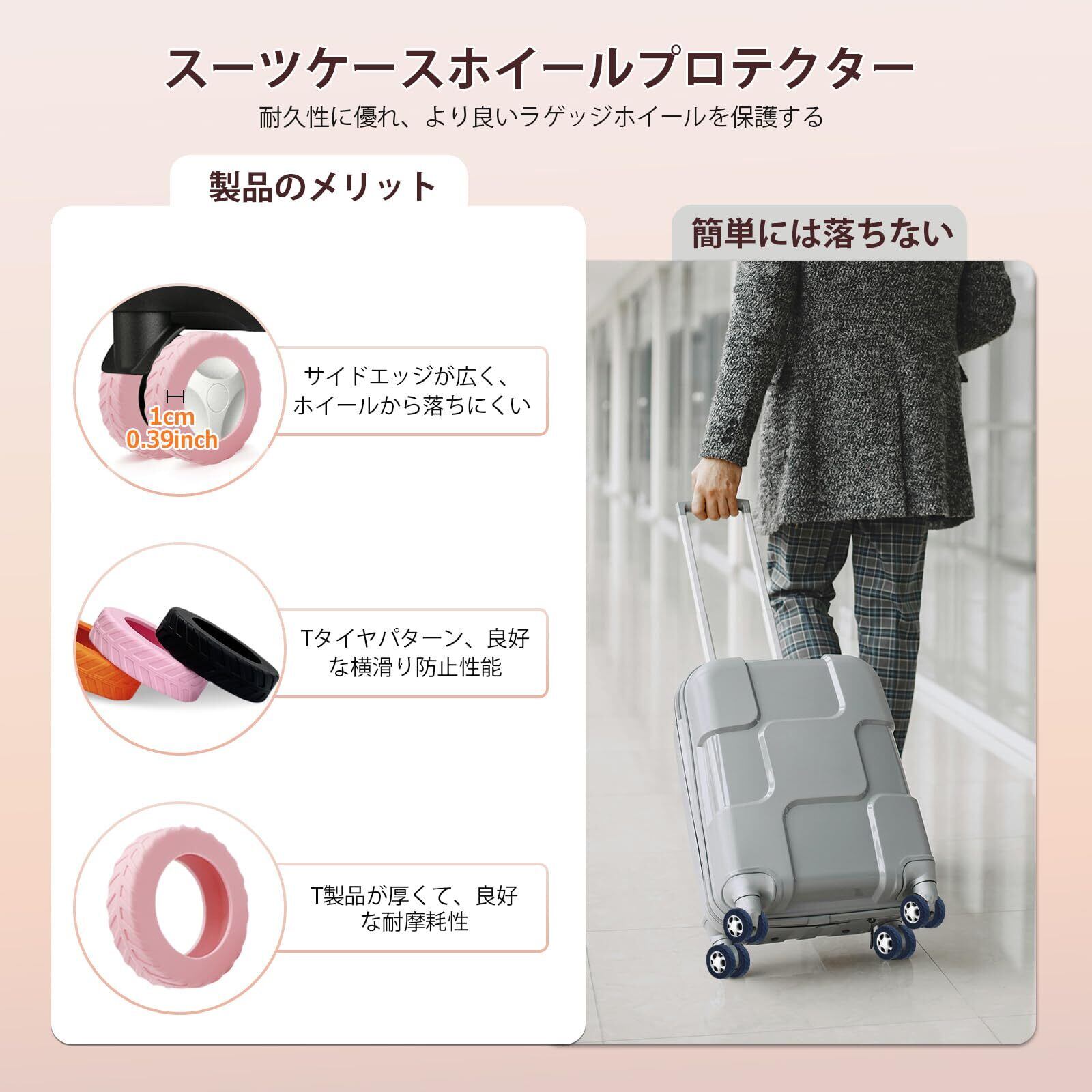 新たにアップグレードされたトランクホイールカバー: この荷物ホイールプロテクターカバーサイドウォールの幅は1.0センチにアップグレードされ、エッジのラッピング領域を広げ、しっかりと包まれ、落ちることはありません。