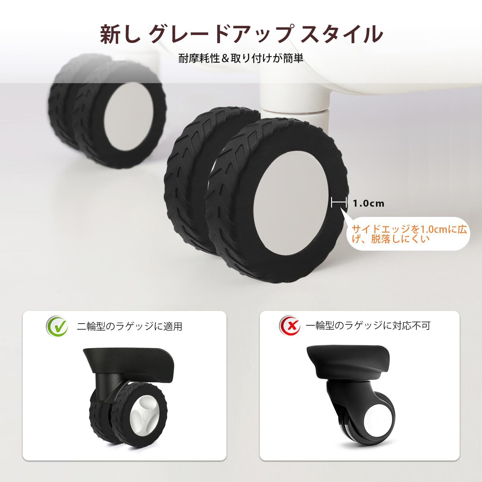 【2022最新】[XYOFUN] 8個セット ラゲッジホイールカバー、最新アップグレード キャスター保護カバー、レベル 8 旅行用スーツケースホイールカバー、汚れ キズ防止 騒音低減 キャリーバッグホイールプロテクター(黒) | gsmshop