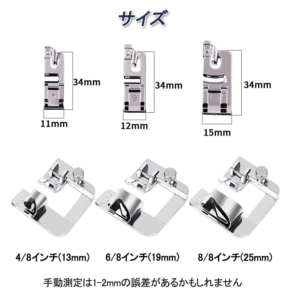 【在庫セール】DFsucces ミシン 押え足 三巻押さえ 交換用ミシン押さえ アタッチメント 多機能 家庭用ミシン専用 13mm 19mm 25mm 3mm 4mm 6mm 6個サイズセット | gsmshop