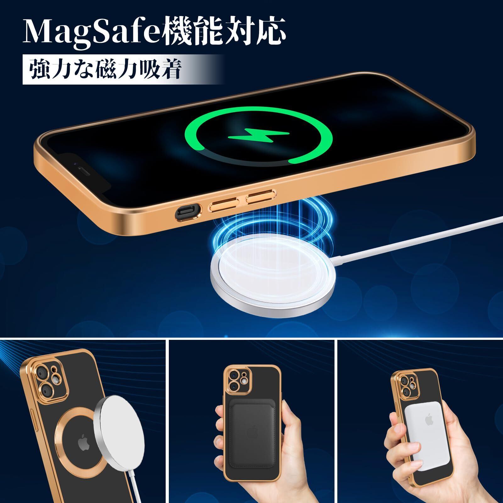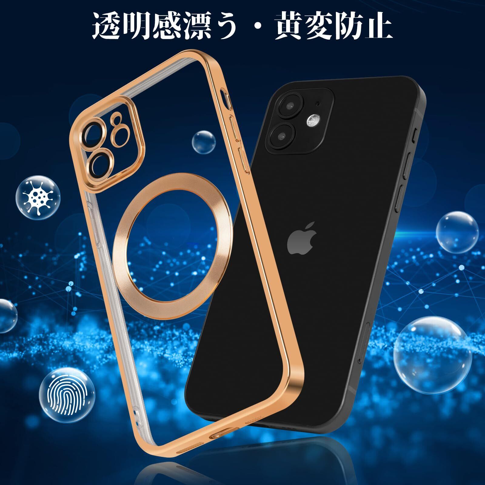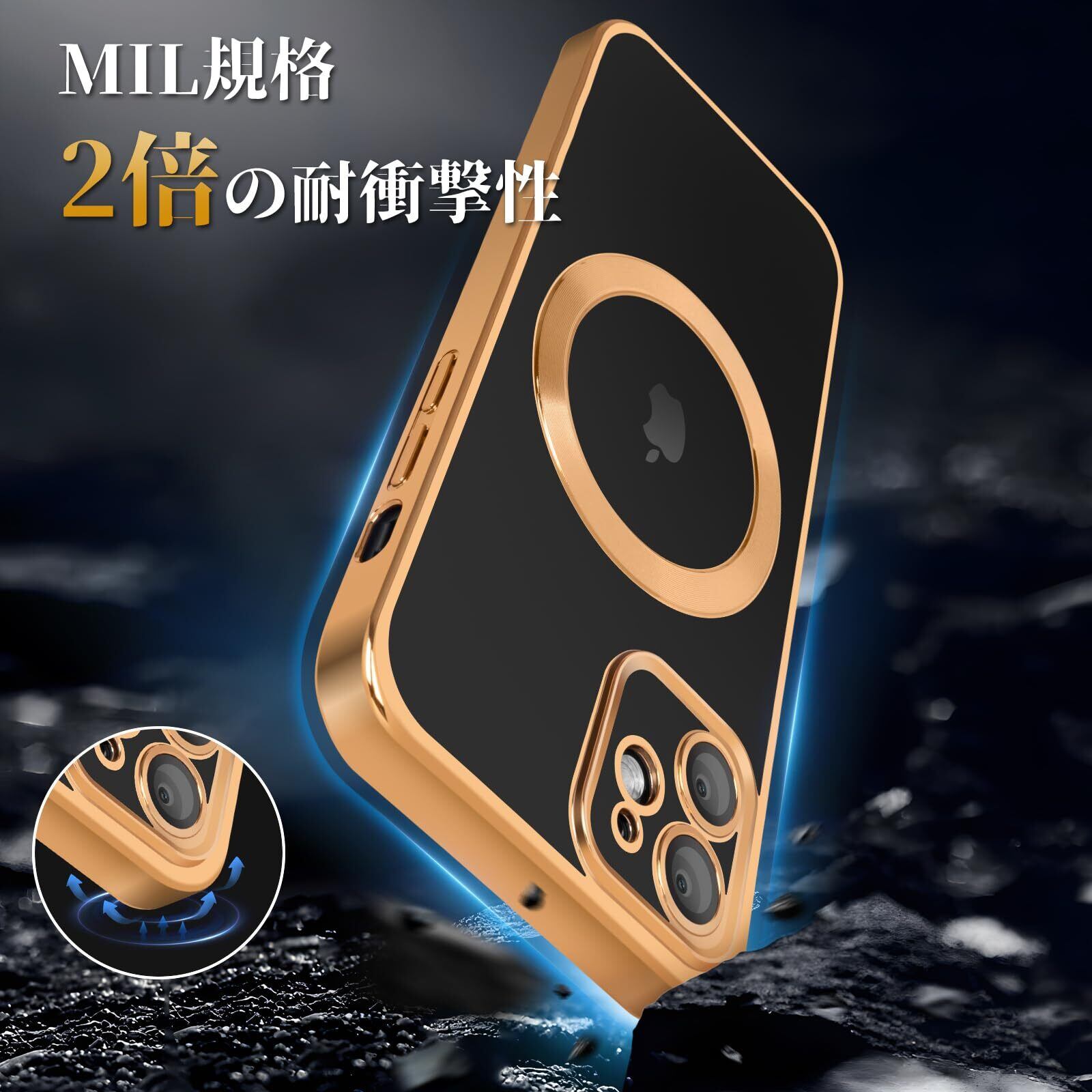 【在庫セール】iPhone12 ケース 耐衝撃 Magsafe対応 黄変防止 米軍MIL規格取得 指紋防止 2023年新型 レンズ保護iPhone 12 用 ケース ワイヤレス充電対応 6.1インチ (ゴールド) | gsmshop
