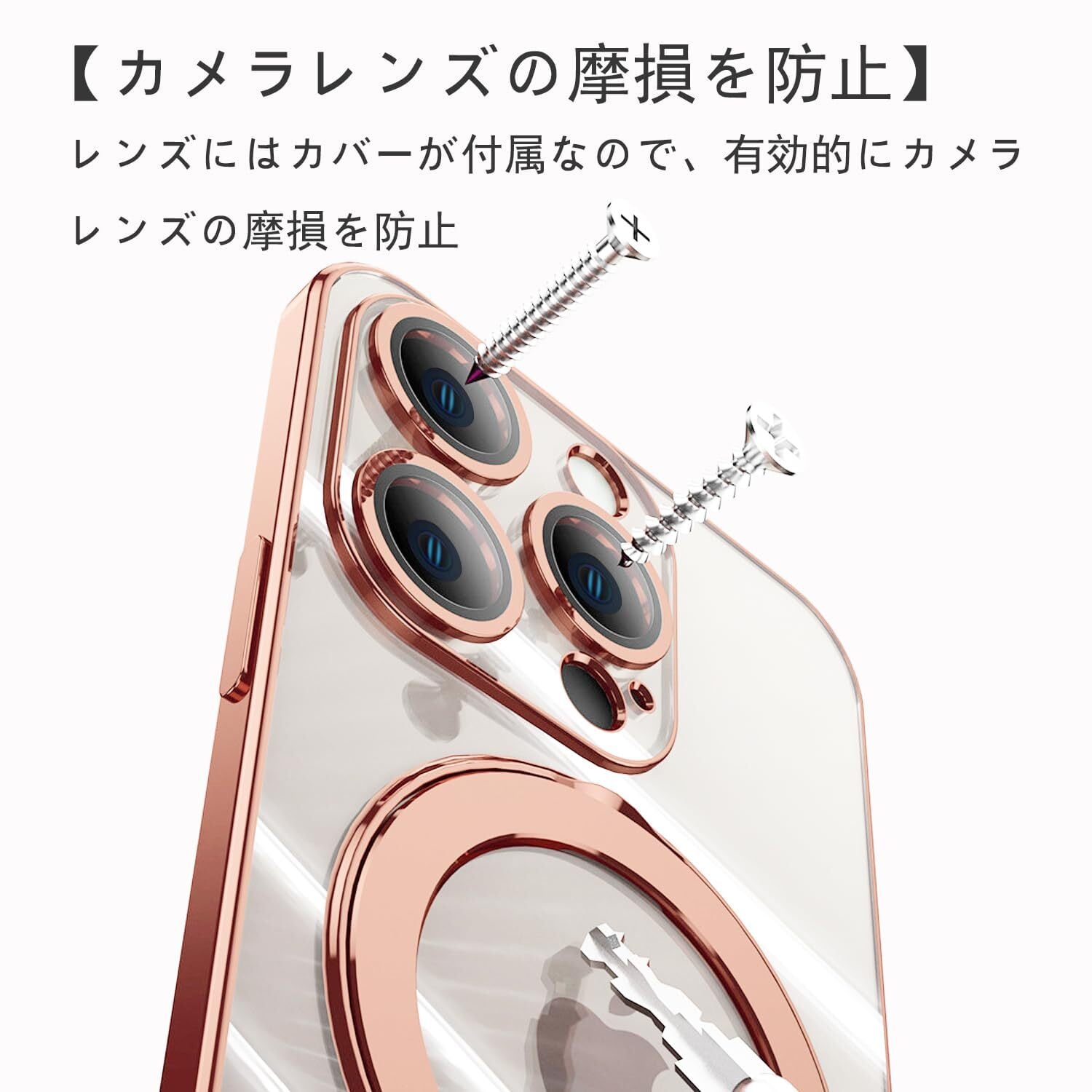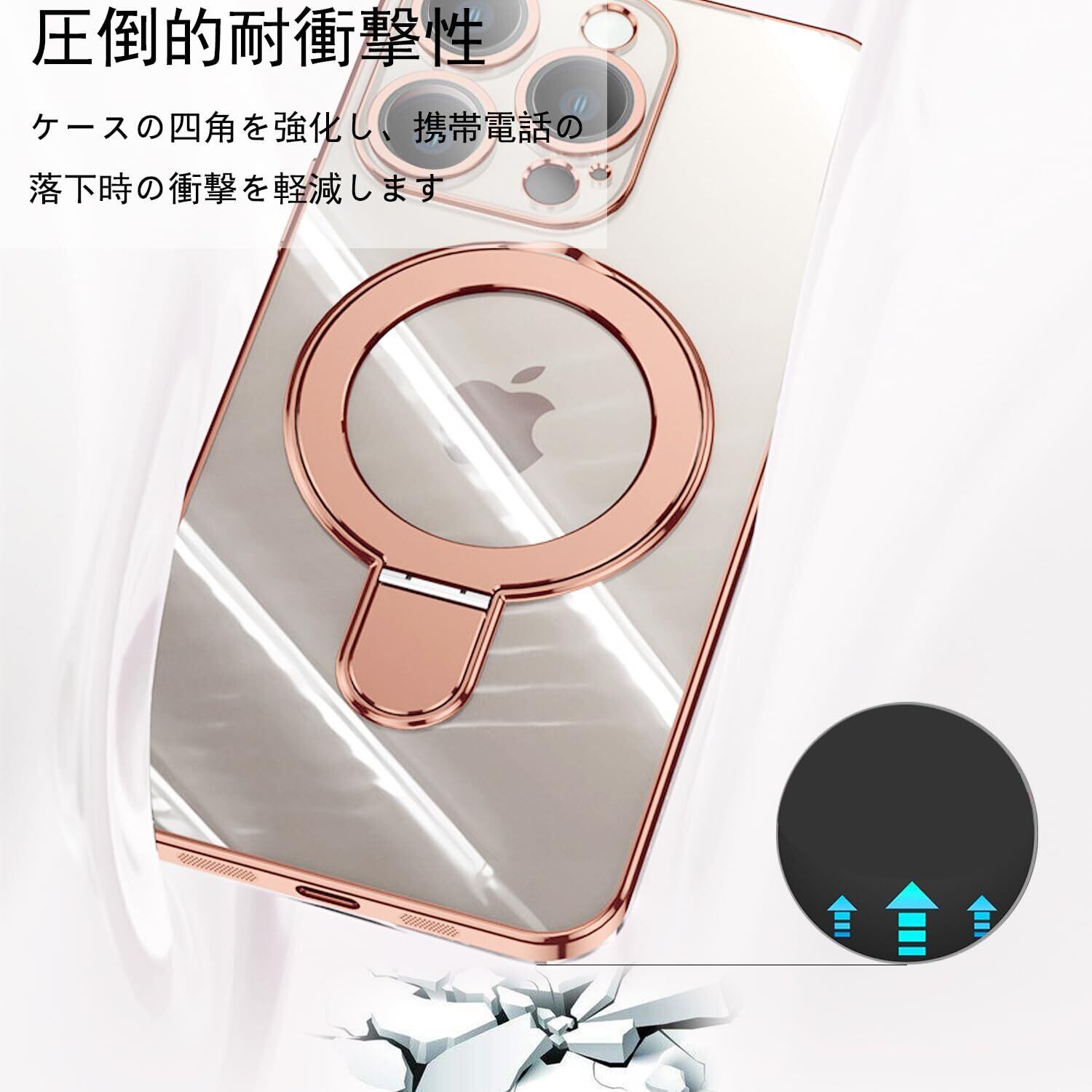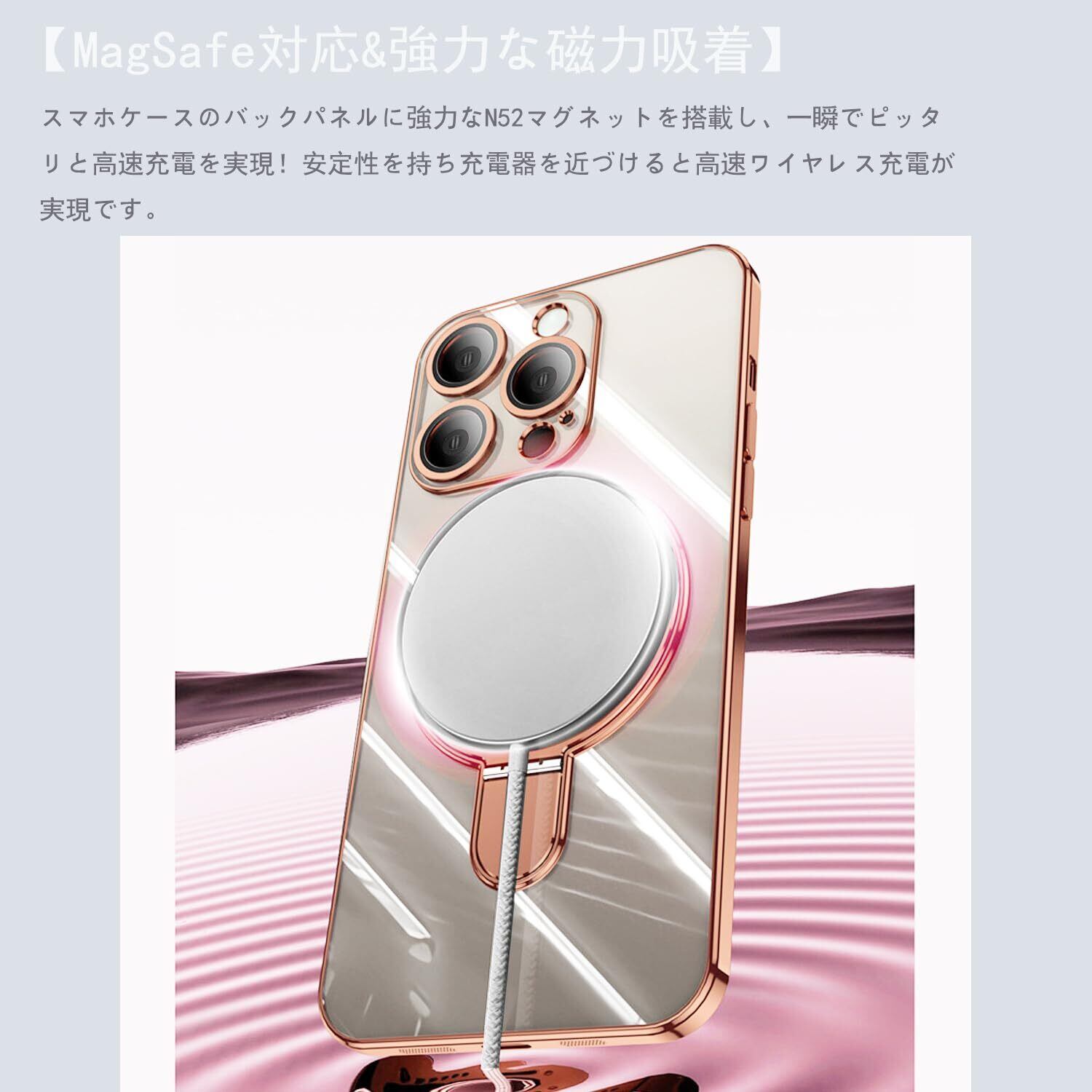 【特価商品】JOOBOY iPhone 13 Pro Max 用 ケース MagSafe対応 クリア リング付き メッキ仕上げ レンズカバー付き ソフトTPU 耐衝撃 傷に強い背面 ワイヤレス充電 ストラップホール付き アイフォン 13 プロマックス 磁気カバー (iPhone13 Pro Max 6.7", ローズゴールド) | gsmshop