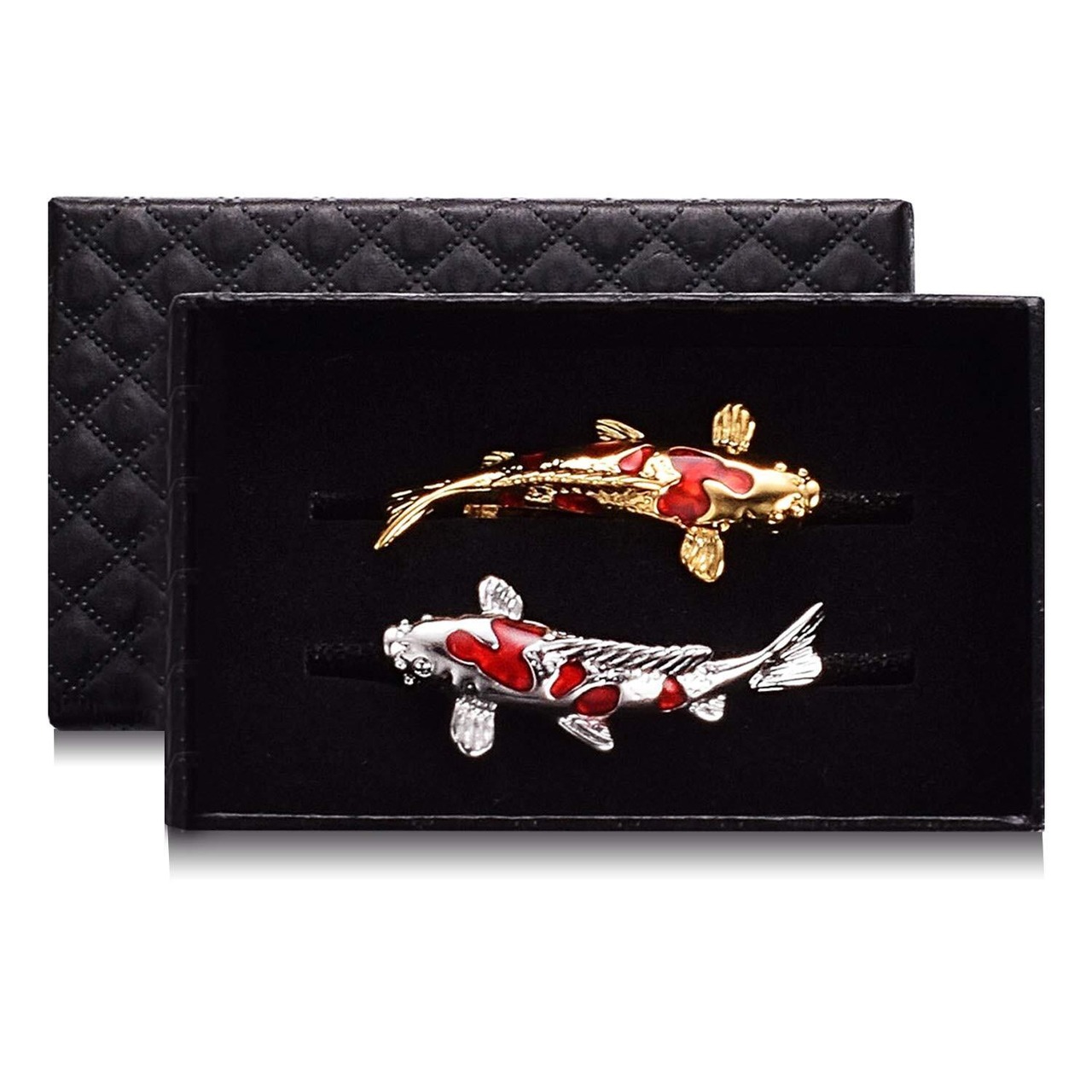 幸運な鯉があなたに幸運をもたらし、毎日幸せになることを願っています。【製品情報】素材:エナメル、真鍮(素材にこだわり腐食しにくい真鍮素材を使用しております)。コイネクタイピンサイズ:4cm*1.8cm。カラー:金、銀。数量:2本セット。付属品:yoursfs専用ケース、ジュエリーメンテナンスマニュアル。