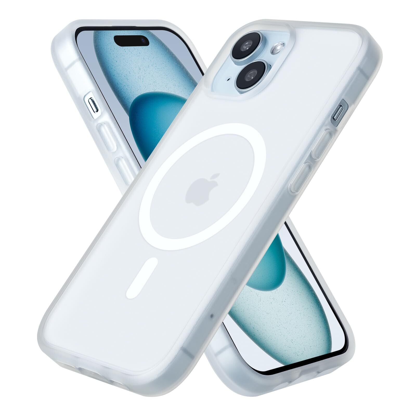 iPhone 15 用 ケース Magsafe対応 iPhone 15 ケース 耐衝撃 マット 滑り止め 指紋防止 米軍MIL規格 黄変防止 耐久性 ワイヤレス充電対応 半透明 マグネット搭載アイホン15 携帯ケース 6.1 インチ (マットクリア)