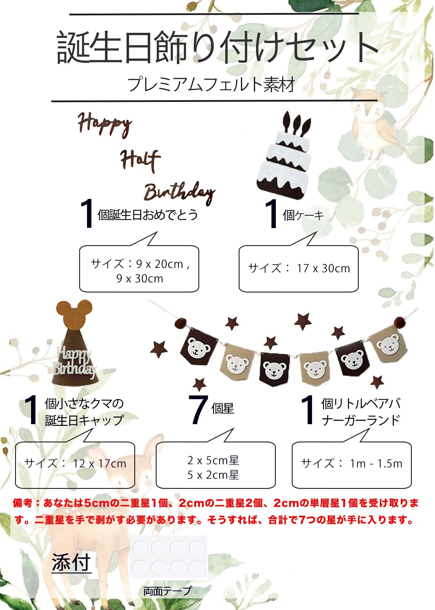 ハーフバースデー 誕生日 飾り 可愛い 1/2歳 誕生日 飾り付け セット 女の子 男の子 高級生地 壁に飾る用のhappy half birthdayフェルト生地バナー、かわいいクマのフェルト生地フラッグガーランド、ケーキ、パーティー帽子、フグボールガーランド、 バースデー 飾り 大人 写真背景 子供 飾り お祝い Half Birthday Party Decorations