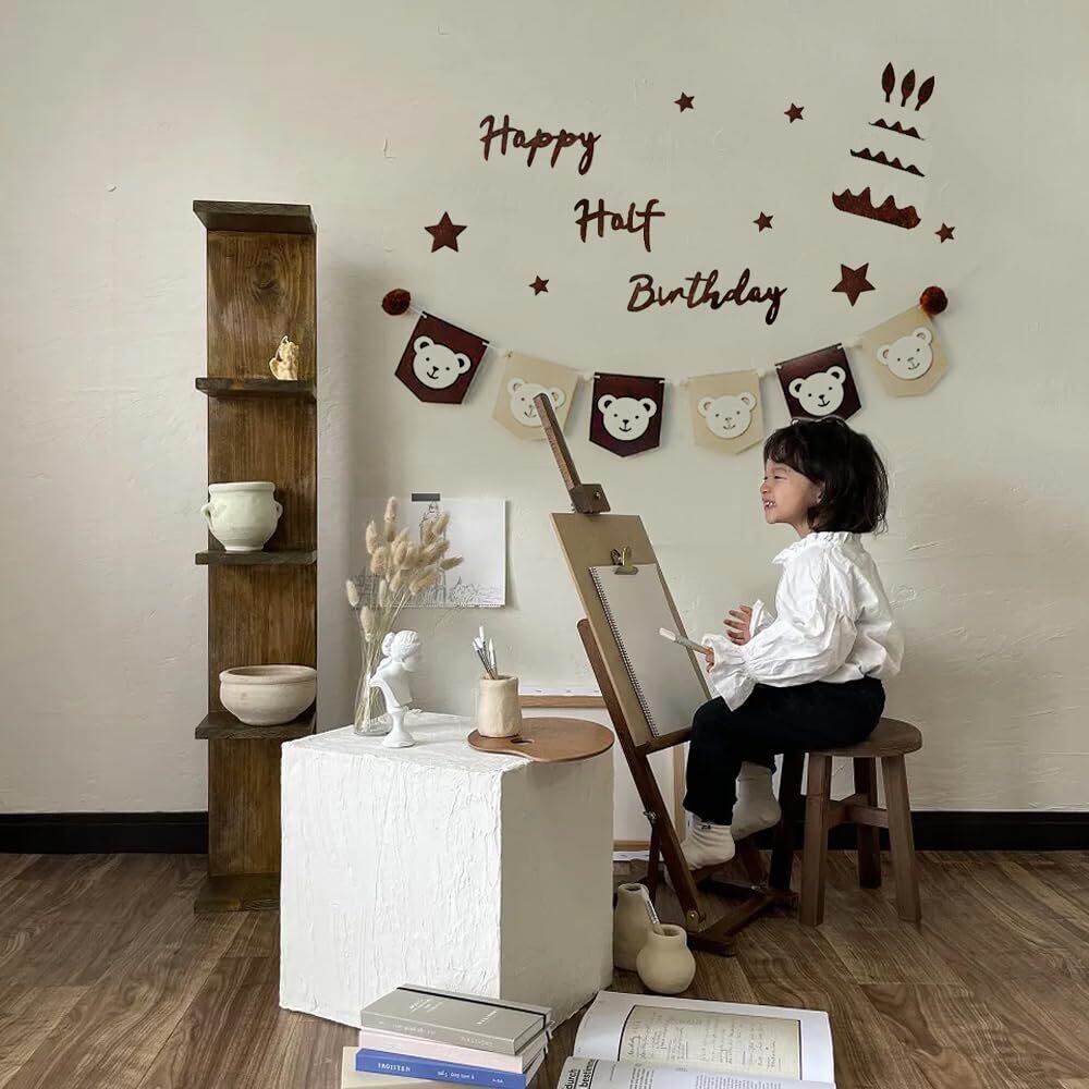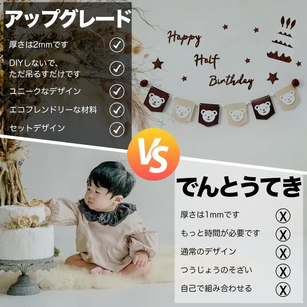 1/2歳を迎えた赤ちゃんの写真をおしゃれに撮影誰でも簡単に飾り付けできるオールインワンセット、組み合わせに迷うことはもうありません インスタ映え間違えなしの写真が撮れます。壁に貼り付けて、お食い初めのお祝いの飾りに、そして温かみのある雰囲気です。