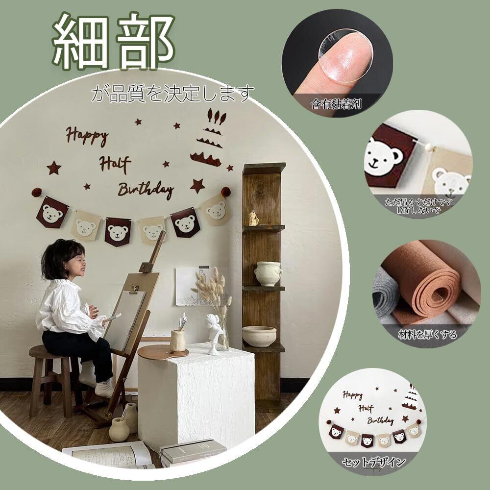 充実のセット内容 ハーフバースデーhappy half birthdayフェルト生地バナーx1、160cm フェルト生地フラッグガーランドx1、250cm フグボールガーランドx1。質が高いですので、きちんと保存すれば、後にも持続に使用でき、コスパが高いです。