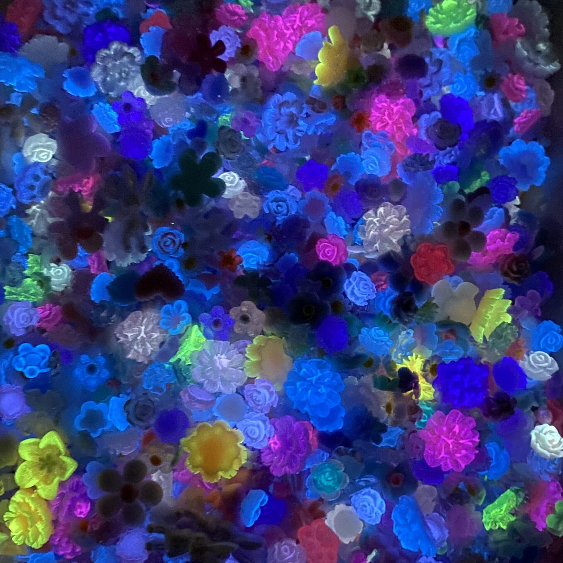 DUOLEIMI 夜光 ネイルパーツ 花 星 蝶々 種類豊富 100pcs リボン ネイルデコレーション 3D 立体 アクセサリーパーツ レジン用 DIY ジュエリーパーツ (夜光彩色系)