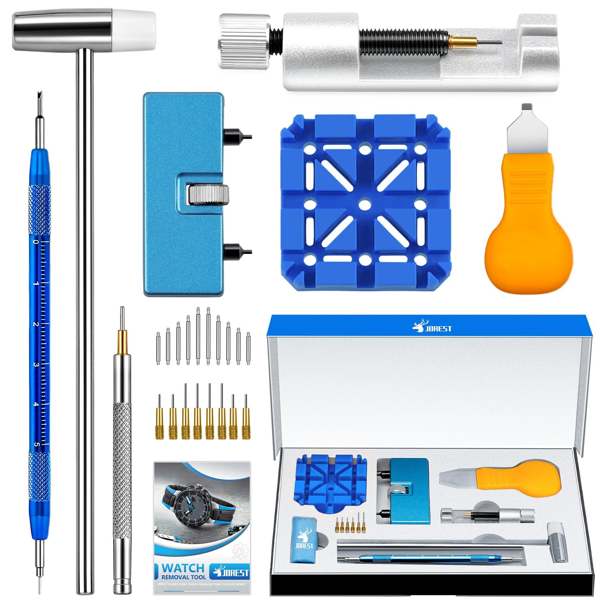 【JOREST】腕時計修理工具セット、時計 電池交換、腕時計ベルト工具、でんち交換 キット、 時計バンド/ベルト 調整工具、 ピン抜き工具、腕時計の裏蓋オープナー、 バネ棒外し、 取扱説明書(英語版)
