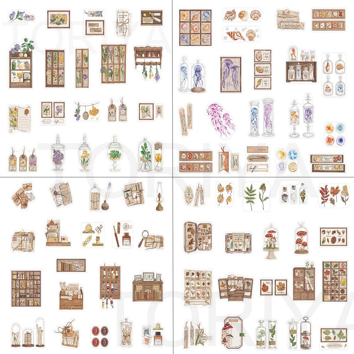 TORIYA 160個 シール 手帳ステッカー 日記ジャーナル装飾用品 DIYステッカーパック マスキングステッカー 花 シェル 手帳素材