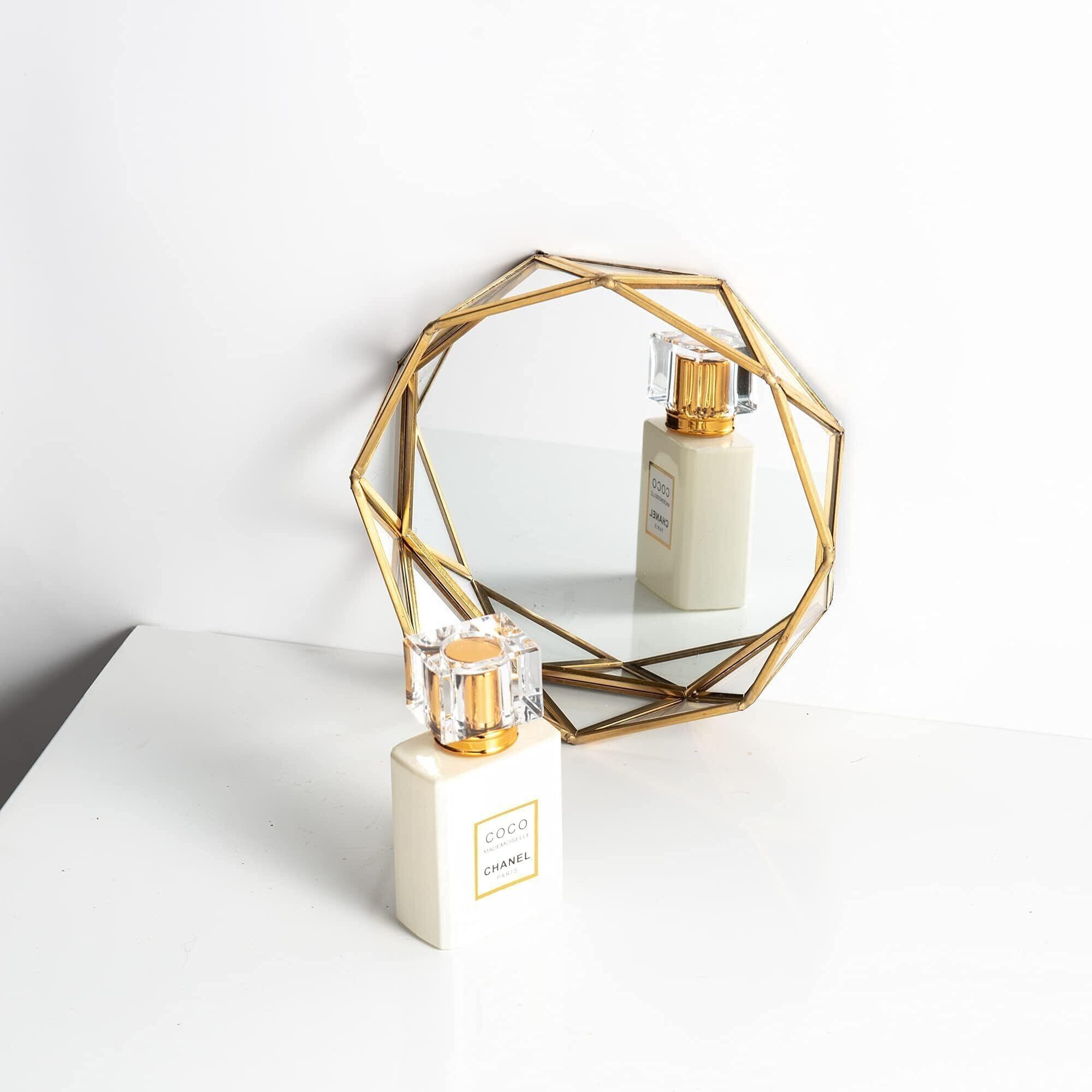 Feyarl ガラストレイ ミラートレー 置くトレイ小物収納 香水 ディスプレイ ゴールド (18cm)