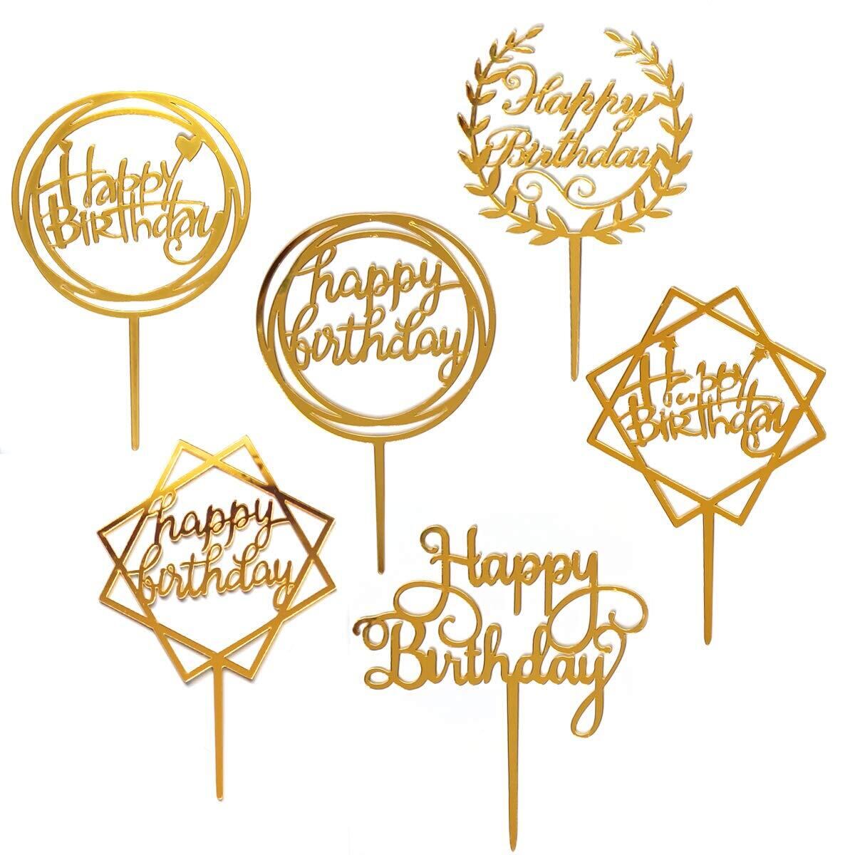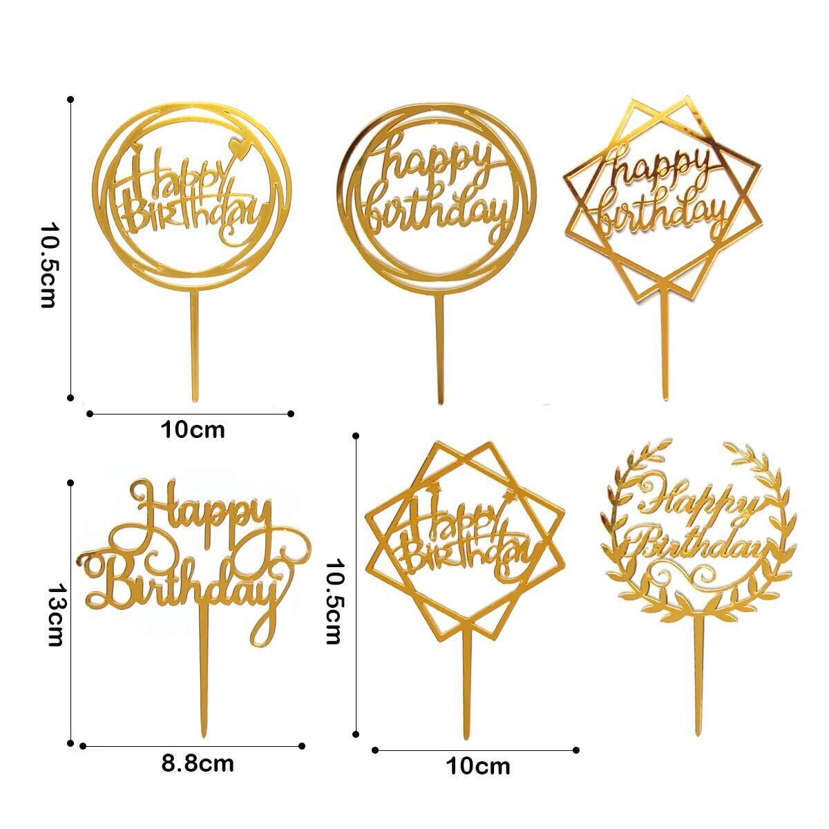 6枚セット Happy Birthday(ゴールド) トッパー バースデー お誕生日 デコレーション 記念写真 写真撮影