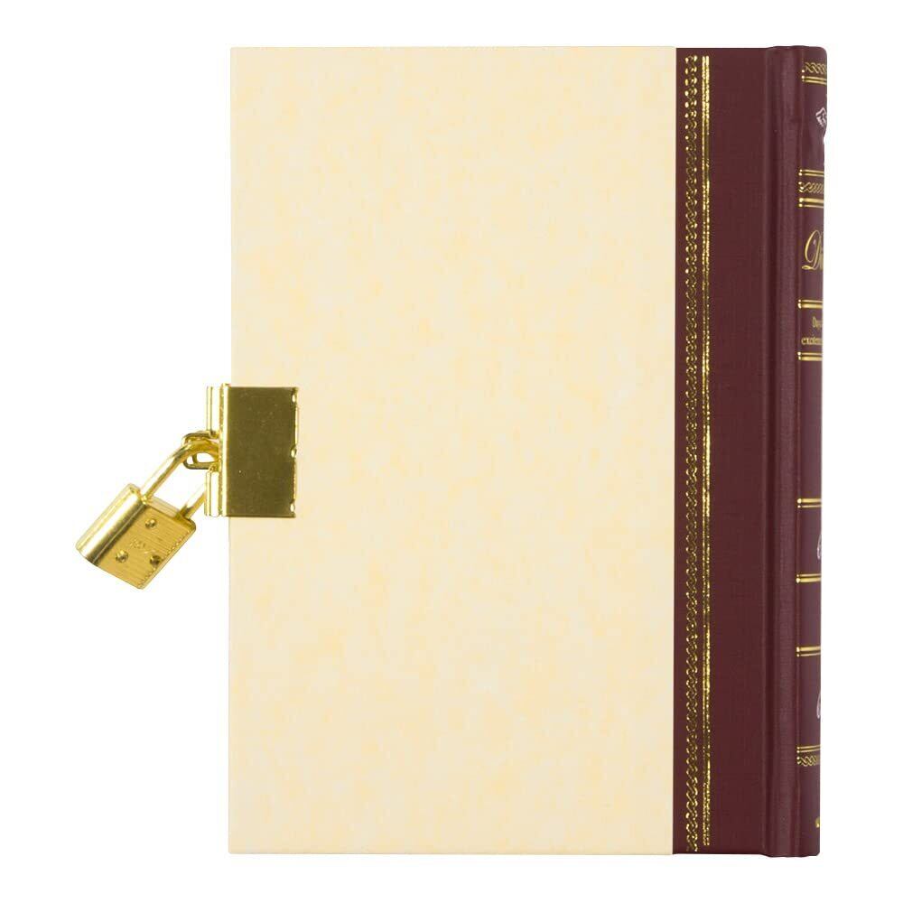 【内容】表紙/紙製、クロス貼り加工、金銀箔押し 中紙/368ページ(2柄) 罫線8mm 鍵/金属製(2本付) しおりひも付 PP箱入