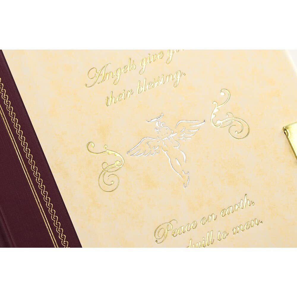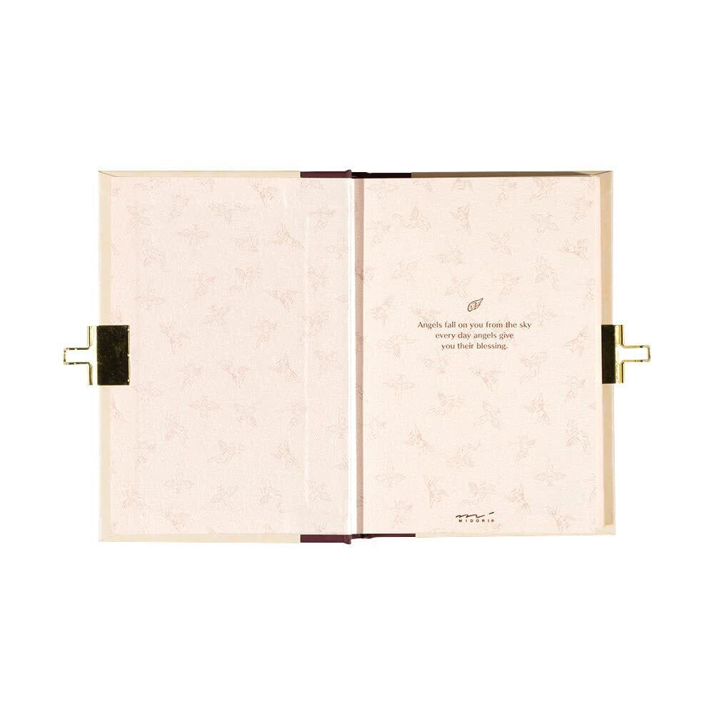 表紙の箔押しが上品な印象で、プレゼントにもおすすめです。商品名:ミドリ 日記 鍵付 天使柄 12370006