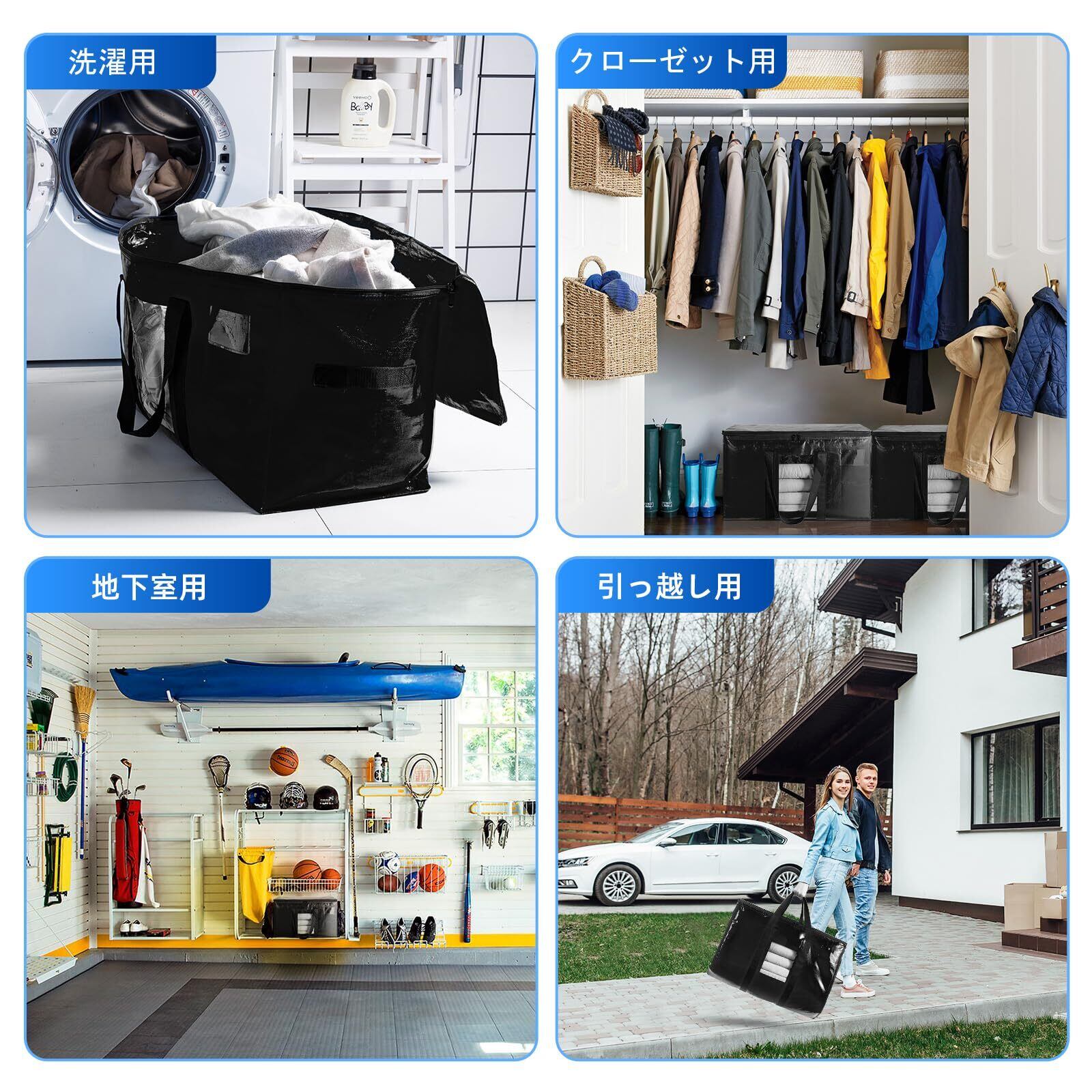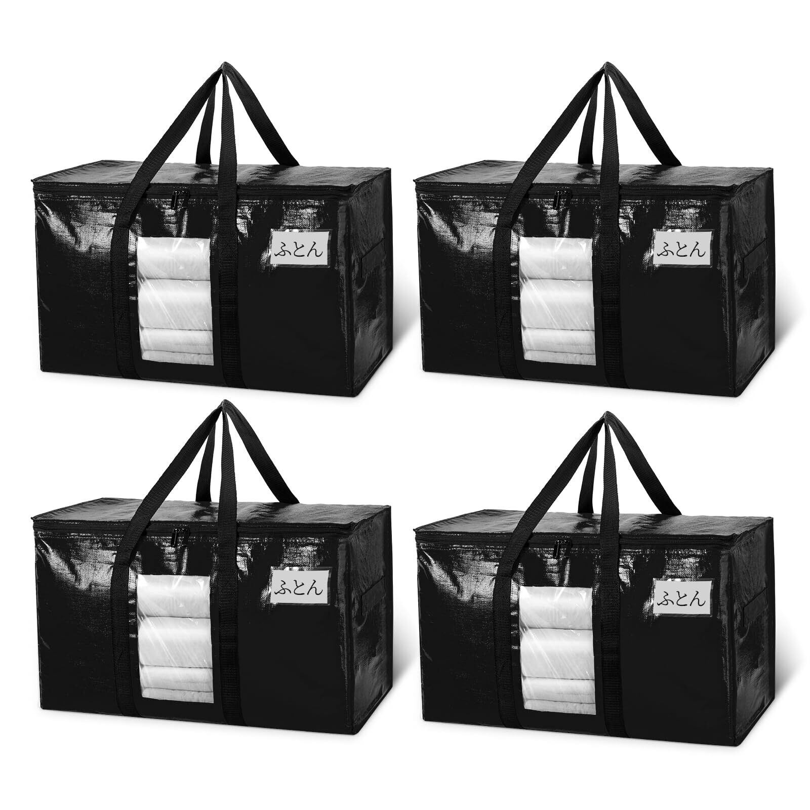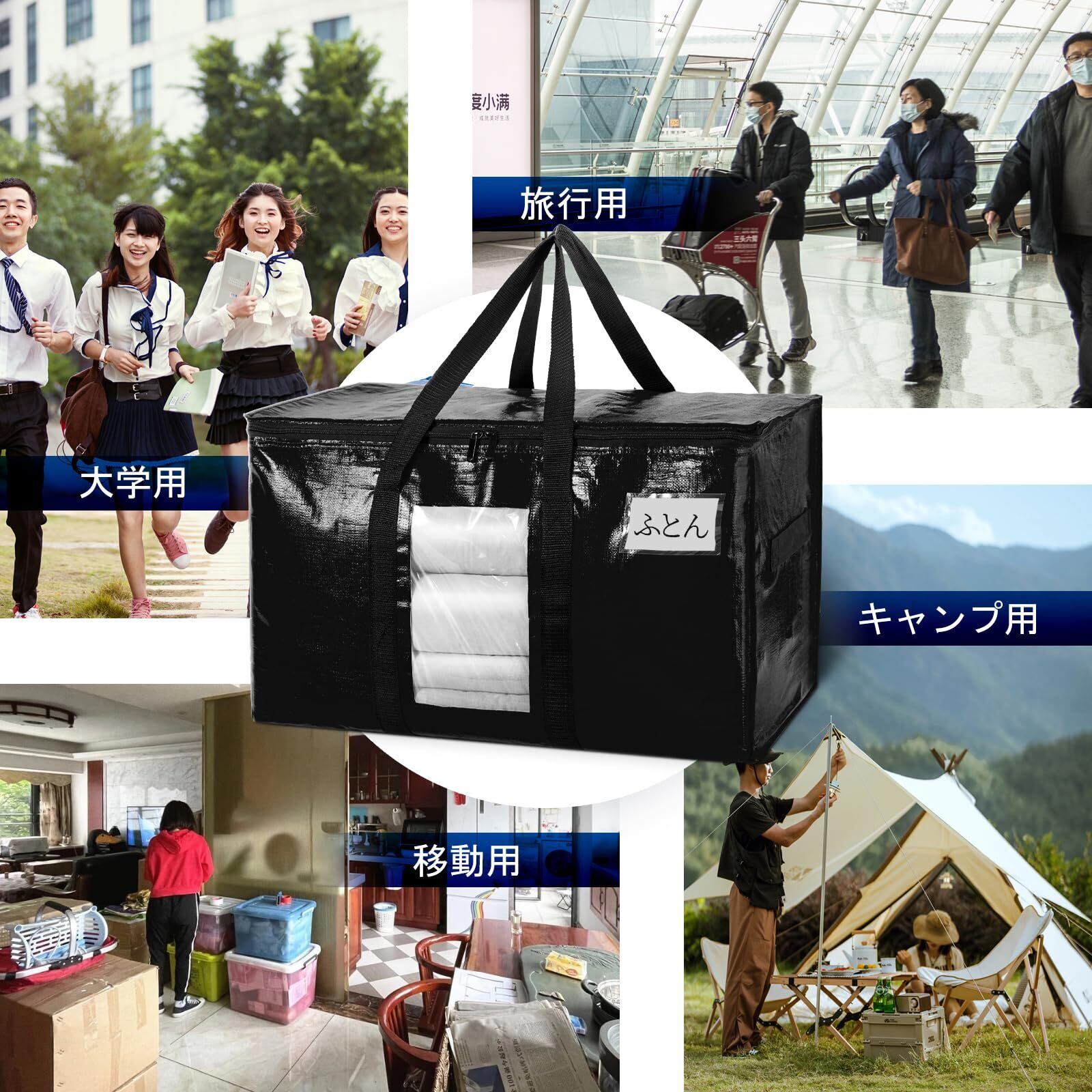 【新春セール】TAILI 大きいバッグ 布団収納袋 引越しバッグ 収納ケース 特大容量 透明窓 持ち手付き 衣装ケース 洋服 羽毛布団 防塵防水 折りたたみ式 カバン 省スペース 引っ越し 背負える キャンプ 旅行 耐荷重 ブラック 4個セット 100L | gsmshop