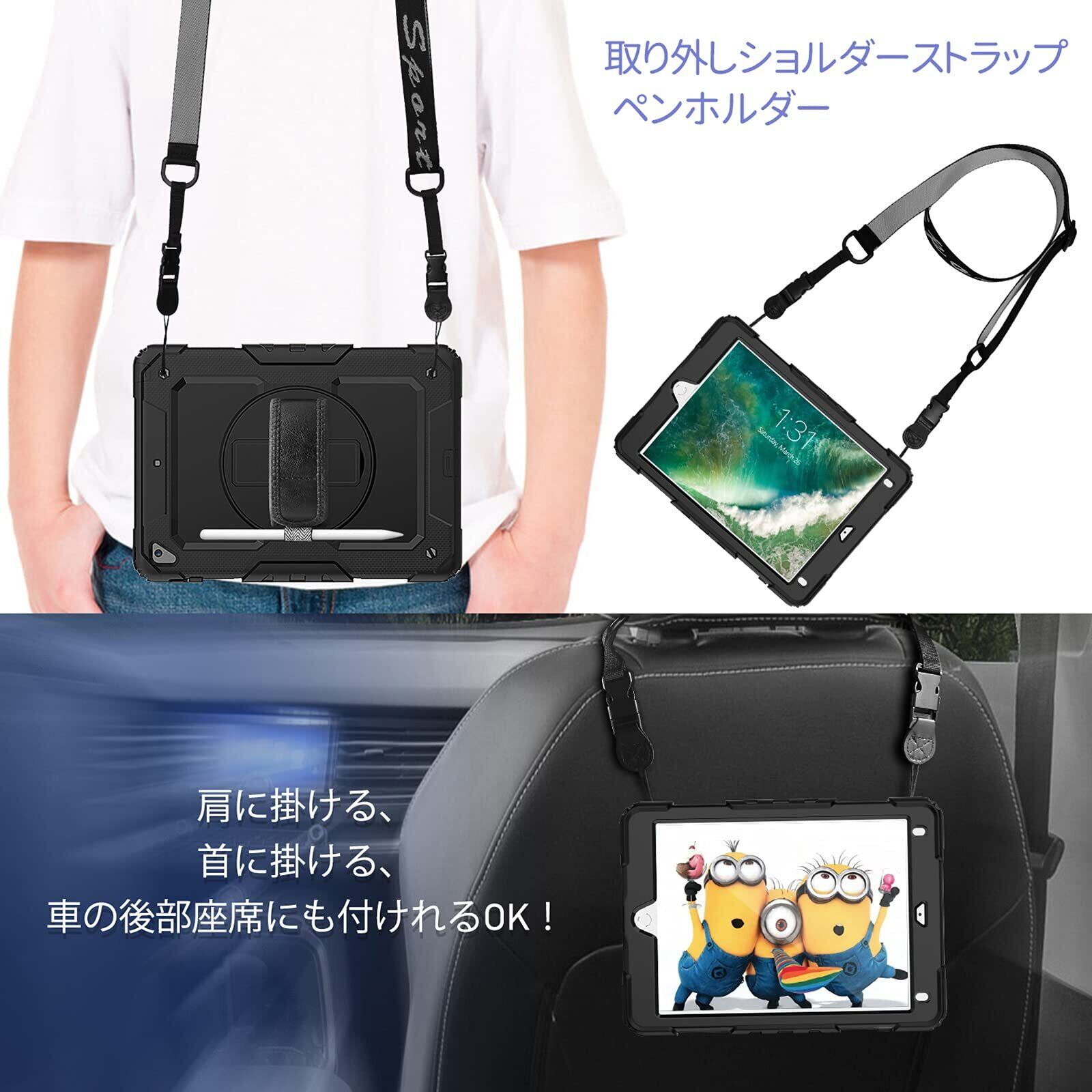 【在庫処分】Timecity iPad 第6世代/ 第5世代/ Air2/ Pro 9.7 インチ ケース 耐衝撃 保護フィルム 360回転スタンド ショルダー&ハンドストラップ ペン収納付き 防塵 頑丈 仕事用 現場 工事 子供 2018/2017 iPad 9.7インチ ケース (ブラック)(適格請求書発行可能) | gsmshop
