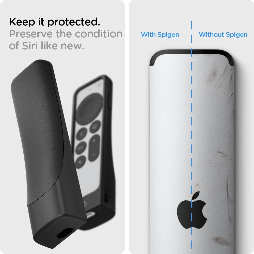 Spigen Apple Siri Remote 第2世代 用リモートケース、Apple 4K TV Siri Remote 第2世代 AirTag用の紛失防止保護滑り止め耐久性シリコン耐衝撃ゴムカバー シリコン・フィット ACS03746 (ブラック)