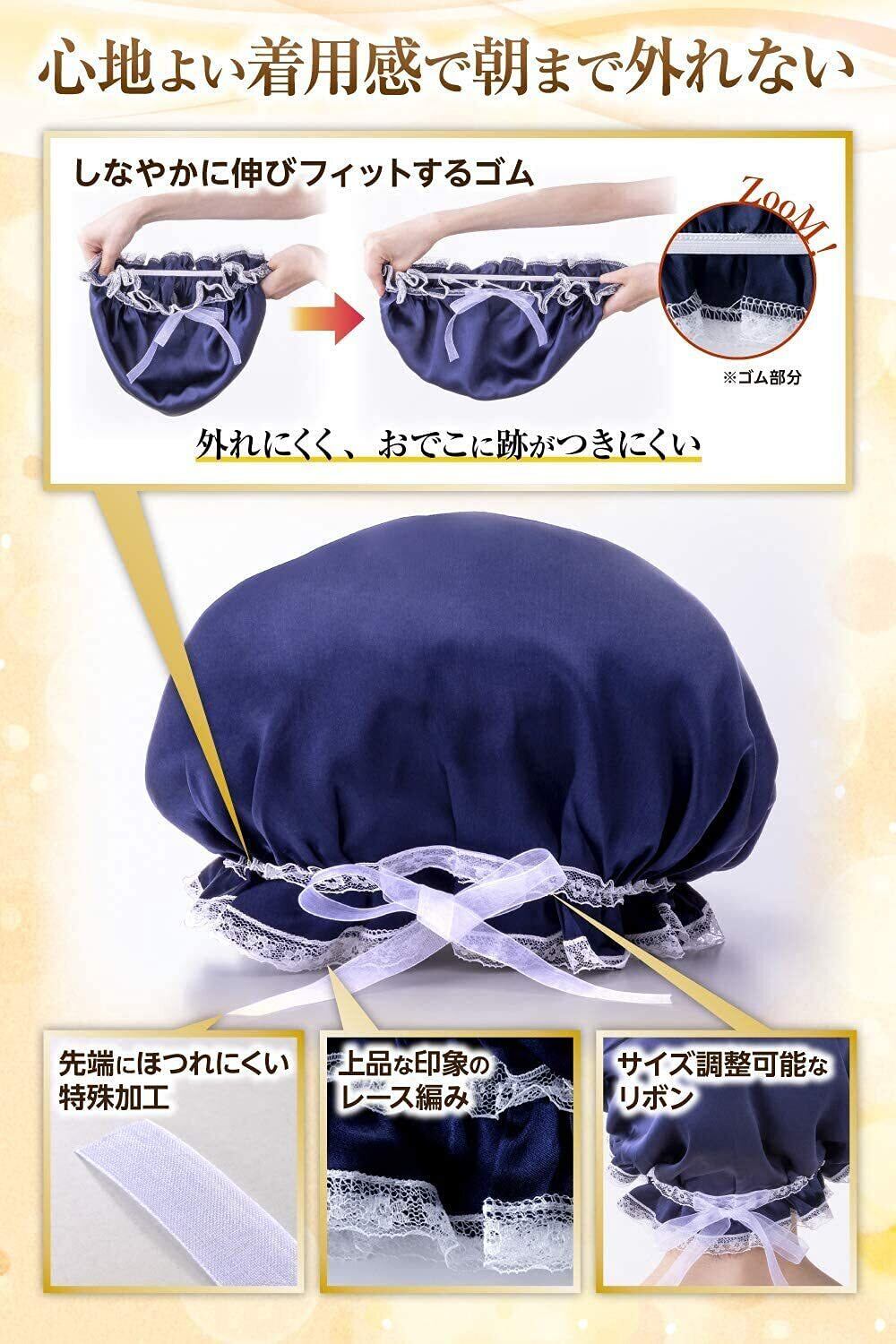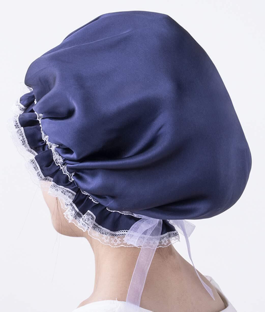 【数量限定】OrangeAnanas シルク ナイトキャップ 天然シルク100% シルクナイトキャップ ナイト ヘアキャップ ロングヘア ロング 用 ネイビー レディース キャップ レース付き 紺 | gsmshop