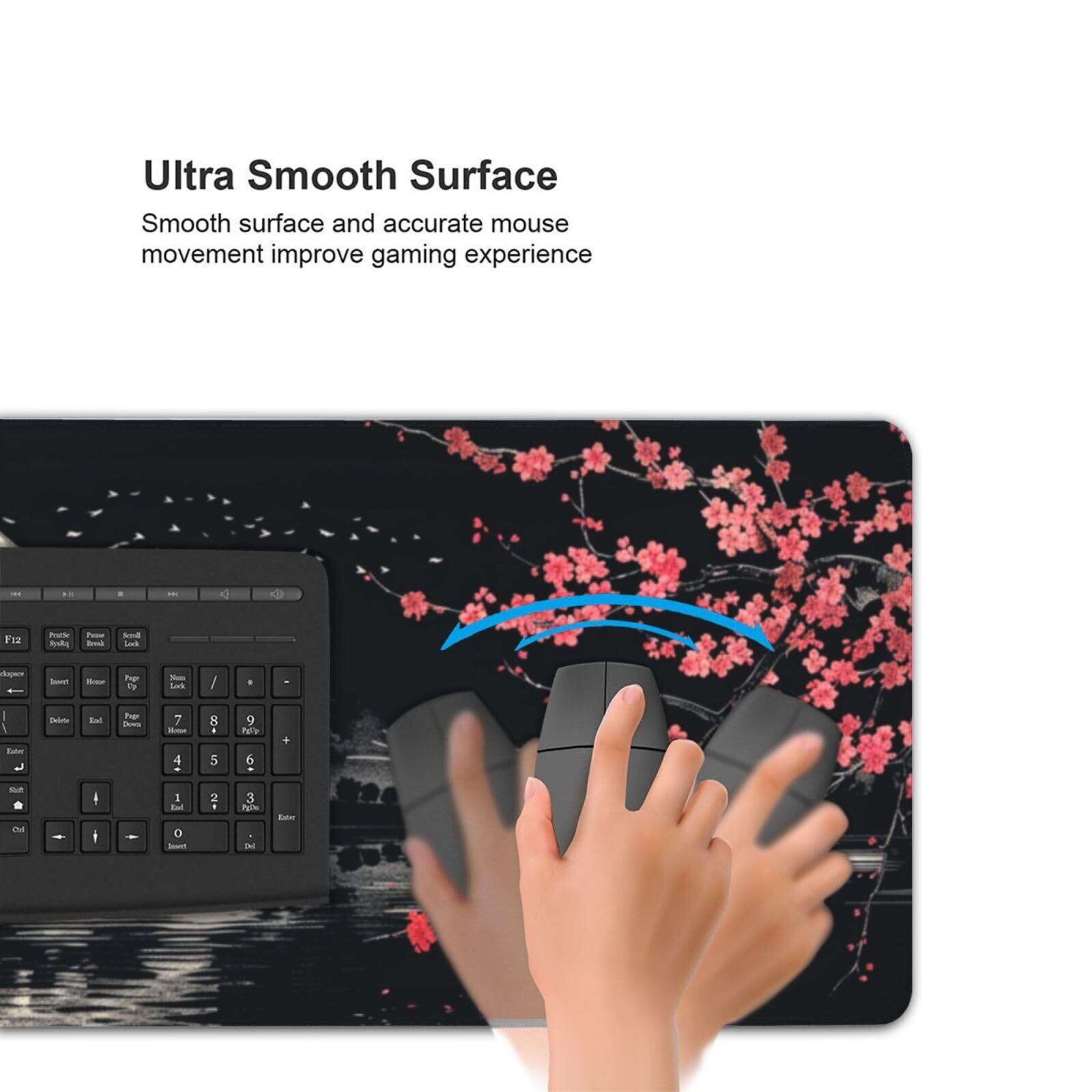 マウスパッド 大型 ゲーミング 和風 富士山 桜 ブラック マウスマット デスクマット 特大 おおきい キーボードパッド ゴム底 エレコム 光学式 マウス対応 滑り止め 耐久性 良い おしゃれ かわいい 防水 サイバーカフェ オフィス最適 適度な表面摩擦 40cm X 90cm