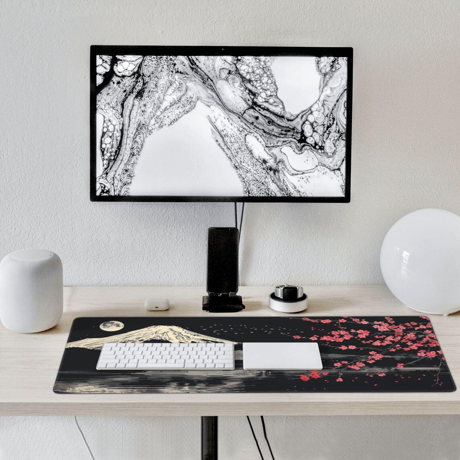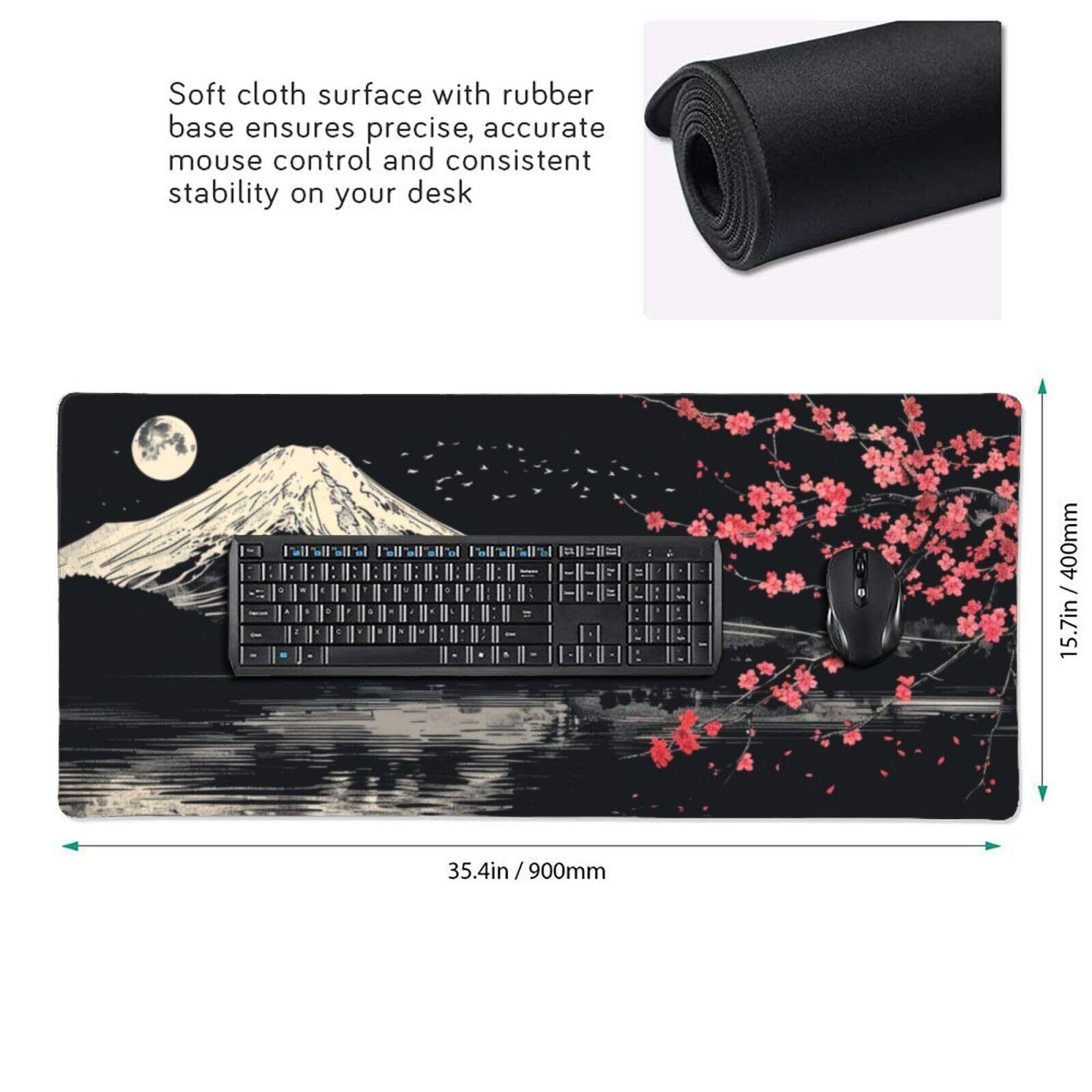 【新着商品】マウスパッド 大型 ゲーミング 和風 富士山 桜 ブラック マウスマット デスクマット 特大 おおきい キーボードパッド ゴム底 エレコム 光学式 マウス対応 滑り止め 耐久性 良い おしゃれ かわいい 防水 サイバーカフェ オフィス最適 適度な表面摩擦 40cm X 90cm | gsmshop