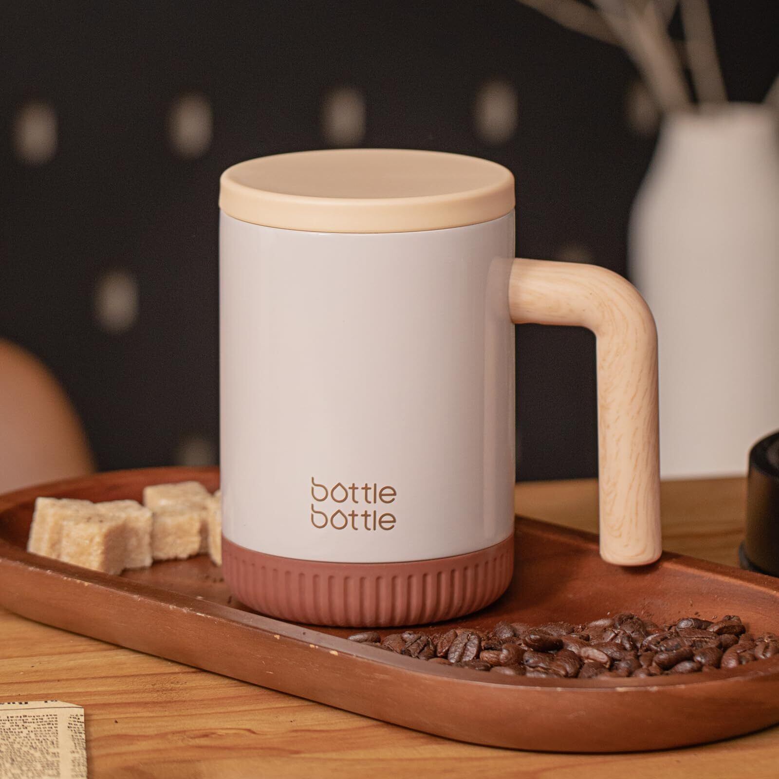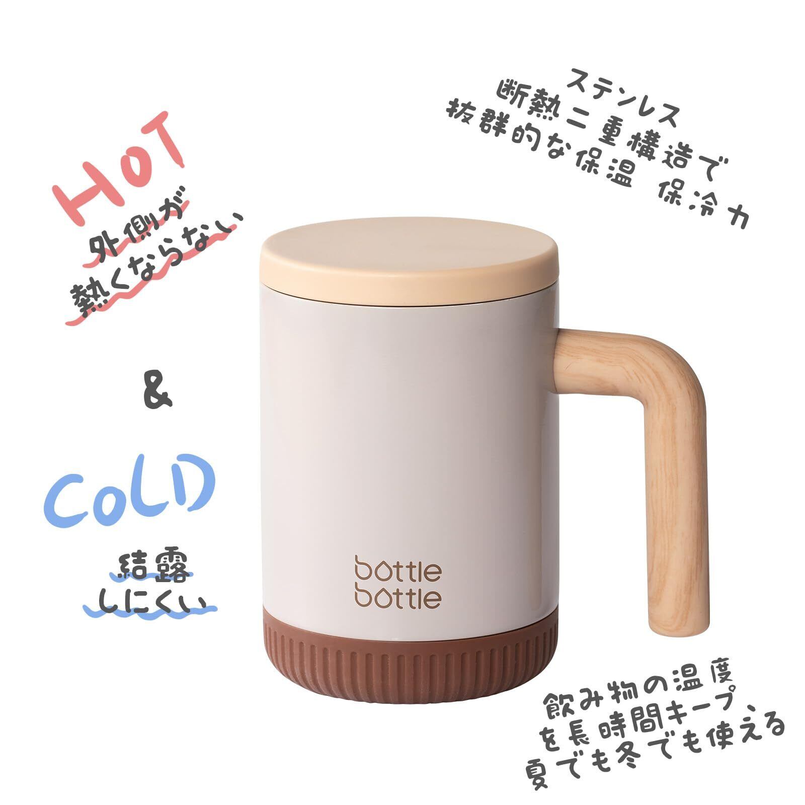 BOTTLE BOTTLE マグカップ 0.4L 蓋付き おしゃれ タンブラー 蓋付き こぼれない ハンドル 二重構造 ステンレス 真空 断熱 保温保冷 コーヒー 直飲み 学生 女性 男性 陶器風 ブラウン
