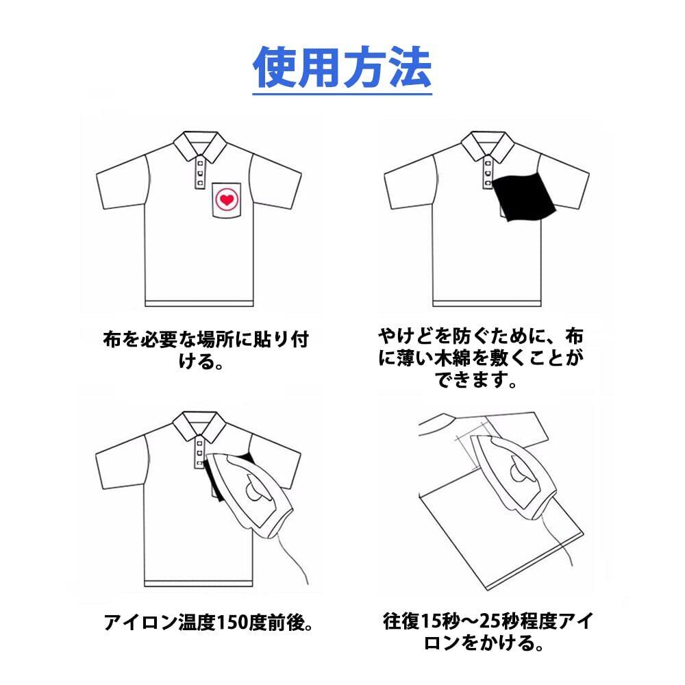 【ご使用方法】使いやすい、アイロンでお手軽に貼り付けが可能。長期間使用する場合は、アイロンで貼り付けた後、周囲に縫い付けることをお勧めします。
