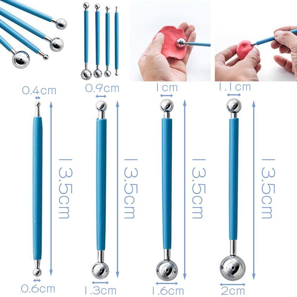 LOYELEY 粘土彫刻ツール 点描ツール 粘土 陶芸 道具 9本セット 18タイプ クレイ ツール クレイ丸棒 細工棒 丸 ヘラ シリコン筆 ドットペン ネイルアート 粘土ツール 趣味 DIY 粘土細工 粘土彫刻