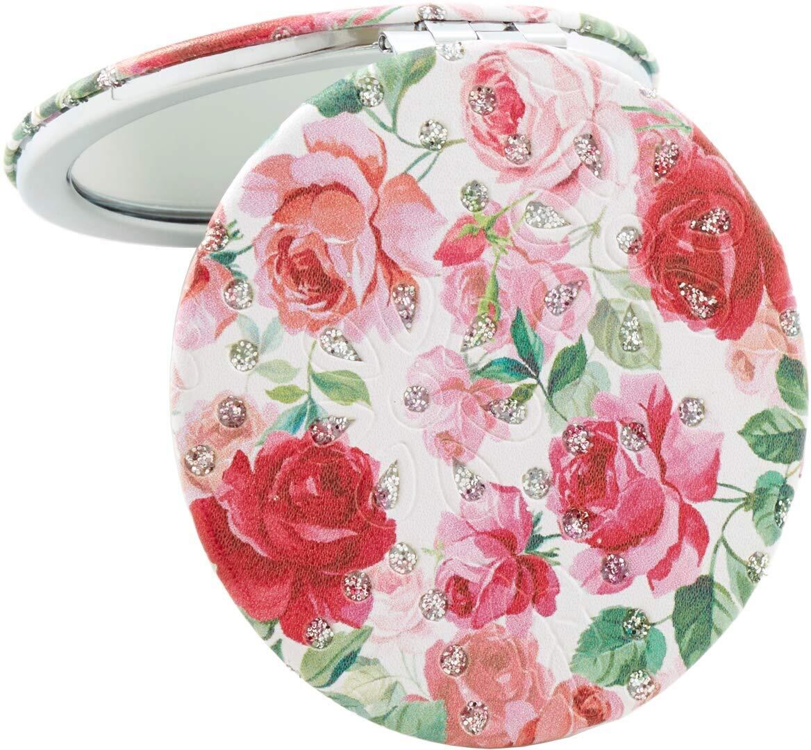ロイヤルアーデン 鏡 コンパクトミラー ラウンド ローズ ホワイト 7×7×1cm バラ雑貨 等倍&拡大2倍